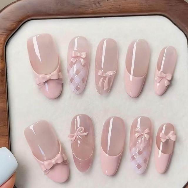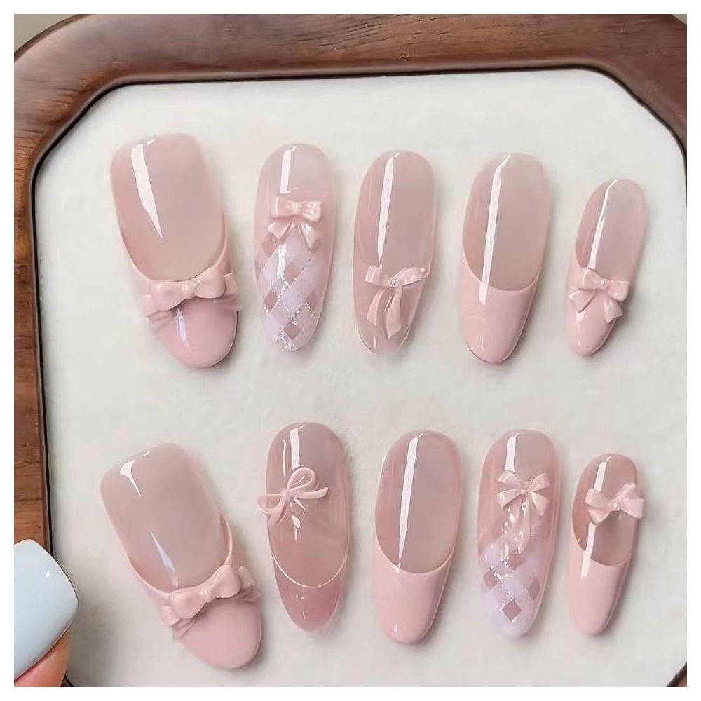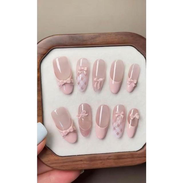免運+新品推薦新春芭蕾粉色蝴蝶結法式氛圍感穿戴顯白半手工穿戴甲美甲高級顯白