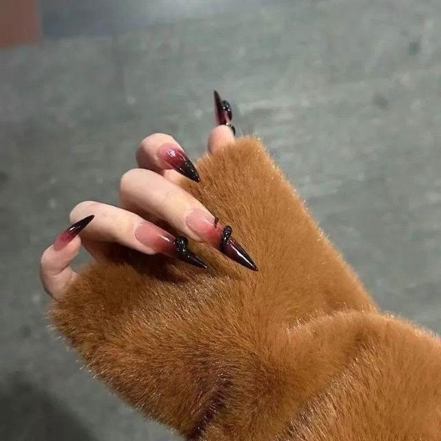 免運+新品推薦定製配件純手工穿戴甲高級辣妹暗黑紅色氣質簡約漸變學生美甲成品