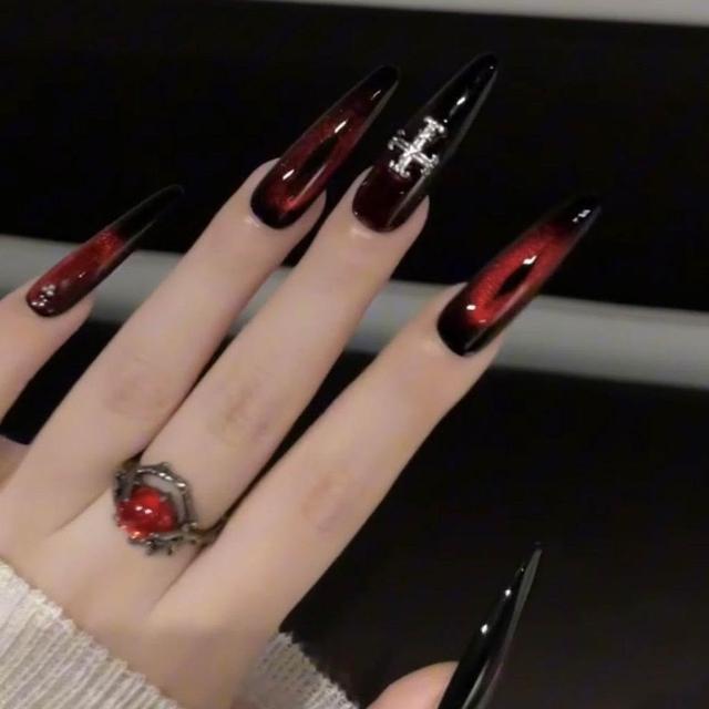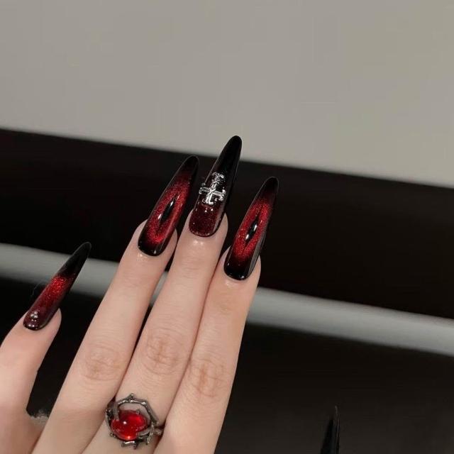 免運+新品推薦手工辣妹貓眼高級定製十字架暗黑紅朋克甜酷顯白長美甲穿戴可拆卸