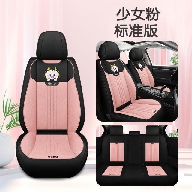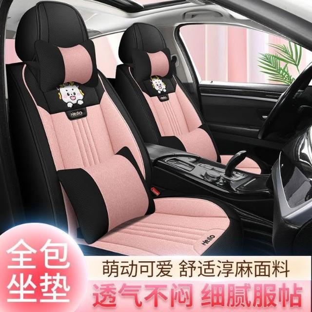 免運+可開發票 潮款汽車坐墊 車內坐墊全套 夏季亞麻布藝 座套卡通 四季通用 座椅墊 透氣舒適防滑耐磨 安裝簡易車用必備