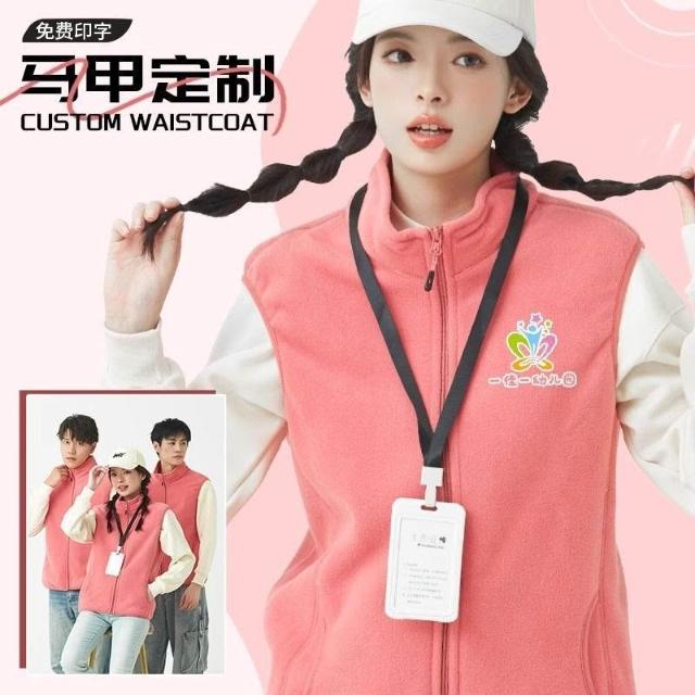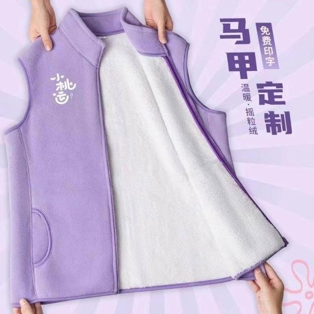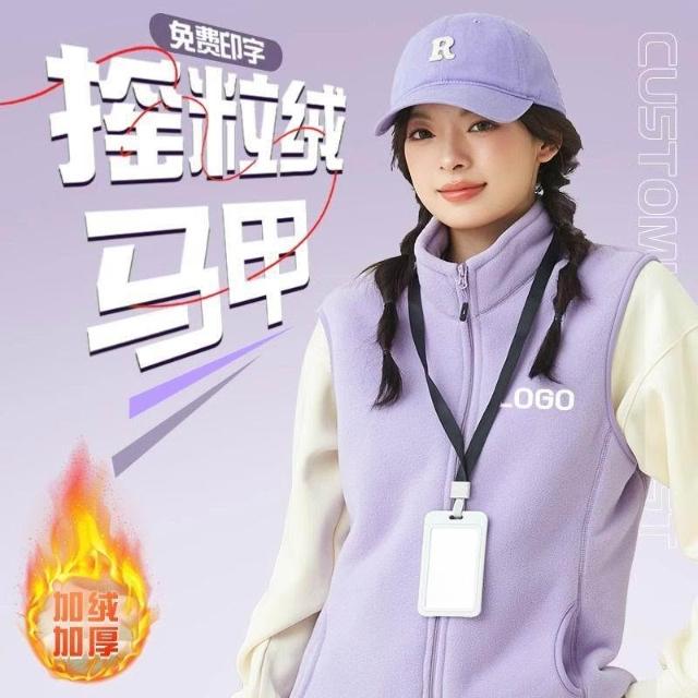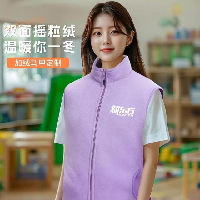 免運+可開發票 清華紫搖粒絨馬甲 定製教育培訓機構 幼兒園老師工作服 背心印logo 男女同款 舒適保暖 耐磨實穿 專用