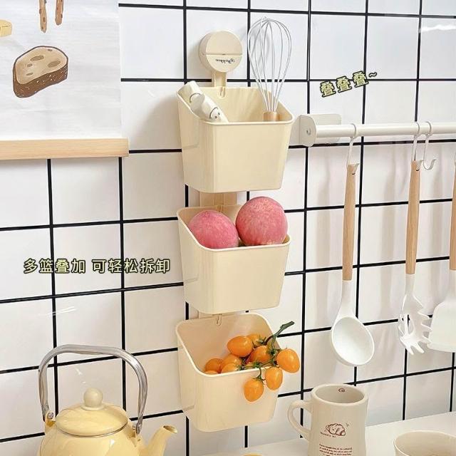 免運+可開發票 廚房吸盤掛籃 蔥薑蒜收納筐 壁掛式蔬菜吊籃子置物架 浴室多功能收納用品 免打孔安裝居家實用 收納神器