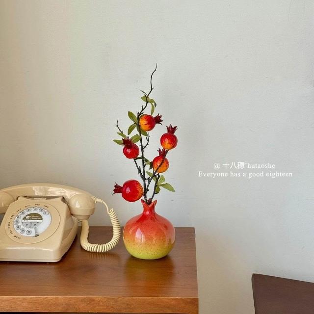免運+可開發票 新年仿真石榴陶瓷花瓶擺件 喜慶紅色桌面裝飾品 質感家居擺設 搭配石榴樹枝插花 過年節慶佈置 討喜吉祥好物