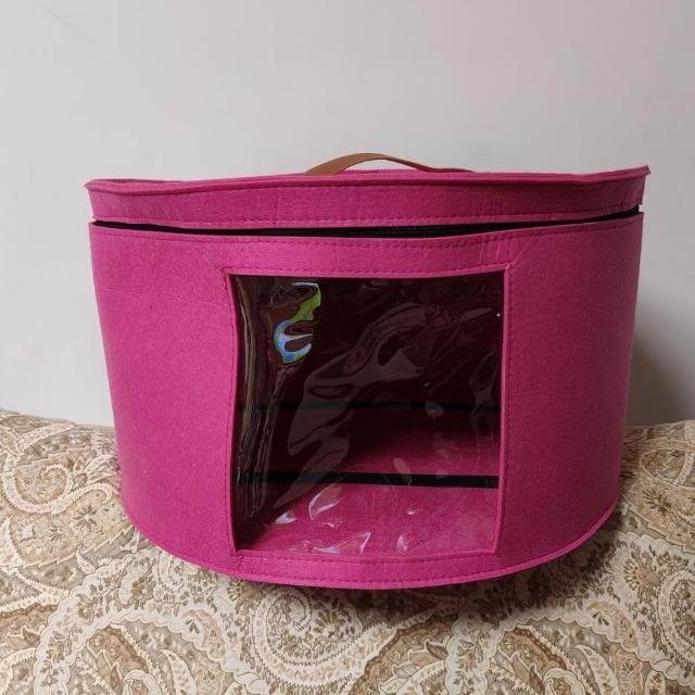 博博精品 新款毛氈包帽子收納盒雜物收納袋旅行便攜手提圓形禮帽收納神器