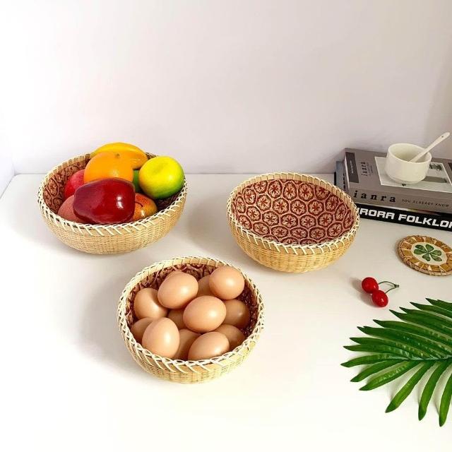 博博精品 越南進口竹編收納籃手工編織廚房竹製品桌面圓形復古經典水果籃zz