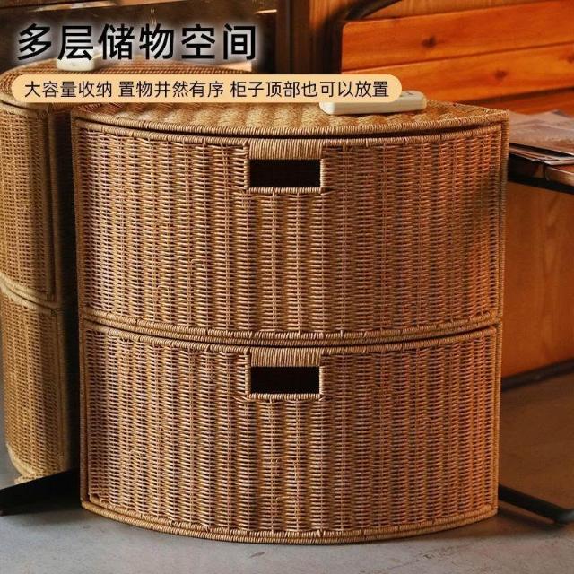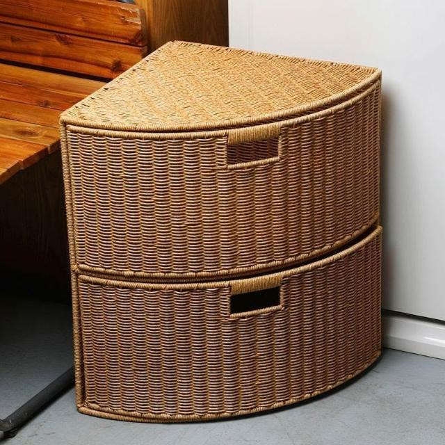 博博精品 扇形置物架客廳轉角收納櫃仿藤編二層整理筐三角抽屜籃弧形收納盒