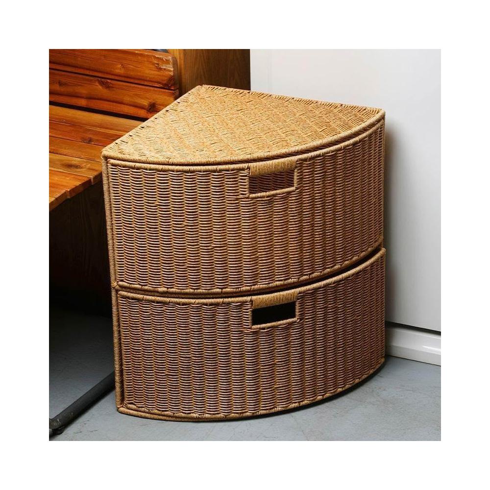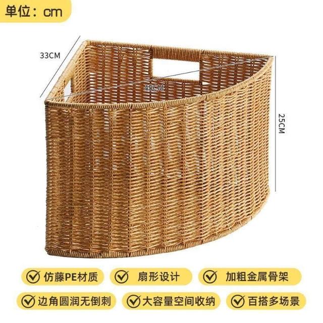 博博精品 扇形置物架客廳轉角收納櫃仿藤編二層整理筐三角抽屜籃弧形收納盒