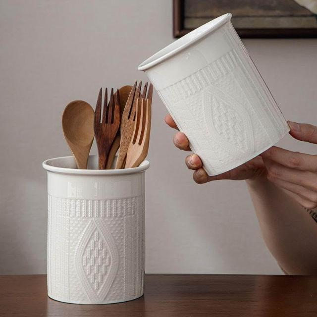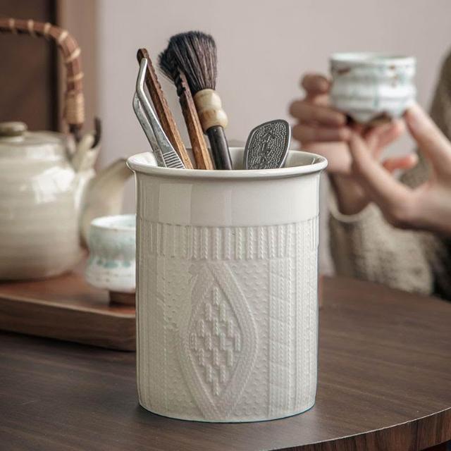 博博精品 巷子尾〖有顏又實用〗毛衣浮雕收納罐餐桌陶瓷筷子筒桌面書房擺件