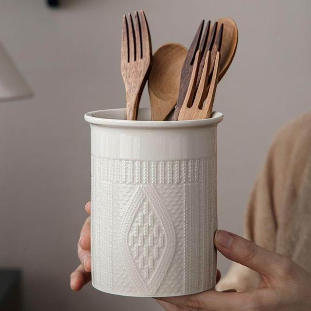 博博精品 巷子尾〖有顏又實用〗毛衣浮雕收納罐餐桌陶瓷筷子筒桌面書房擺件