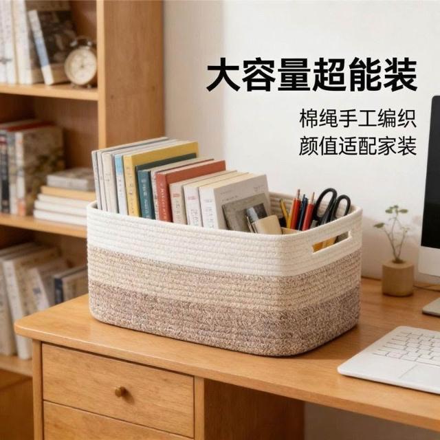 博博精品 日式棉繩收納筐多功能桌面籃創意儲物筐專爲您的小家定製收納方便