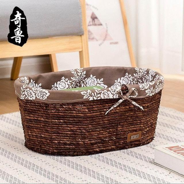 博博精品 奇魯 藤編桌面收納筐零食盒衣服整理籃草編手工編織盒儲物箱新款