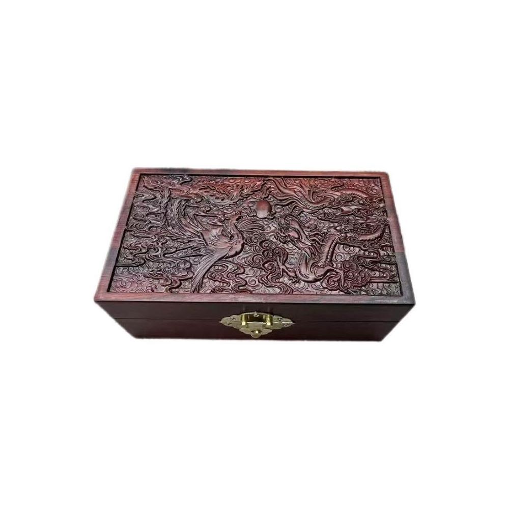 博博精品 緬甸花梨青銅紋首飾盒仿古收納盒珠寶玉器實木雕刻禮盒龍紋盒子