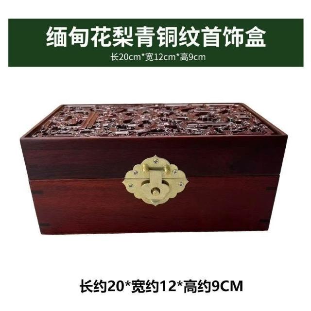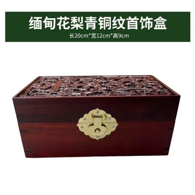 博博精品 緬甸花梨青銅紋首飾盒仿古收納盒珠寶玉器實木雕刻禮盒龍紋盒子
