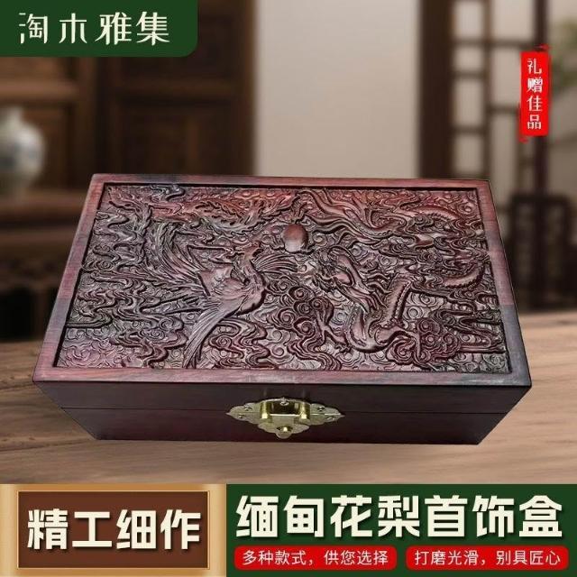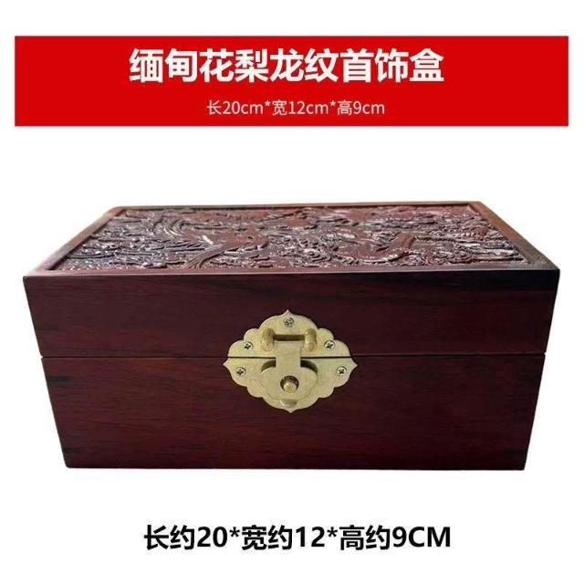博博精品 緬甸花梨青銅紋首飾盒仿古收納盒珠寶玉器實木雕刻禮盒龍紋盒子