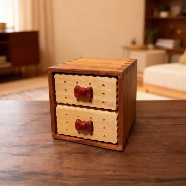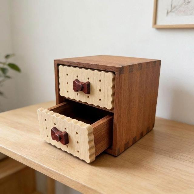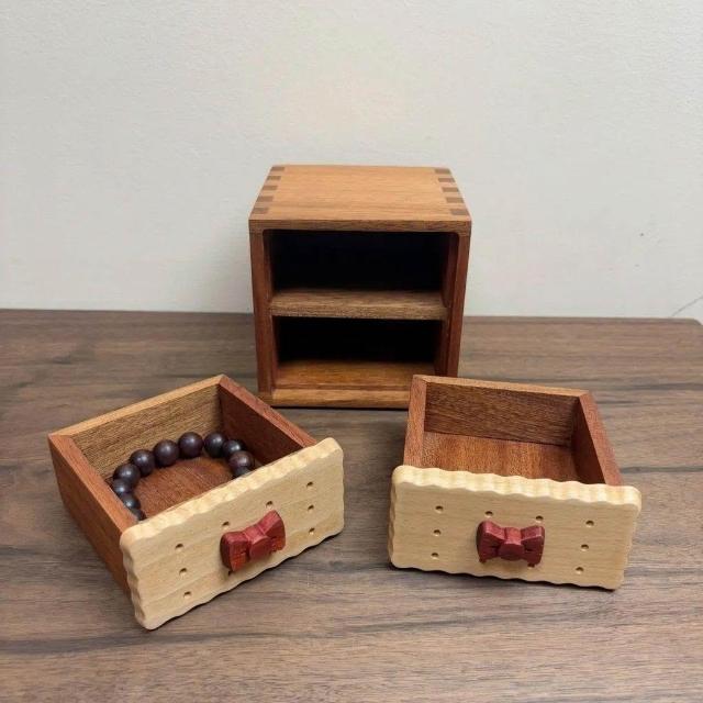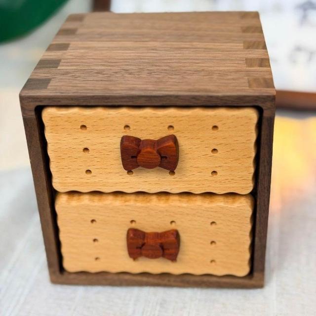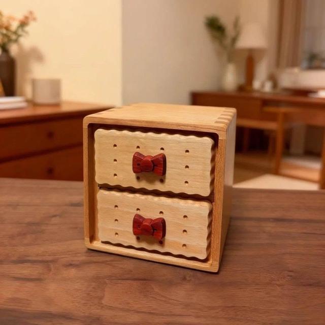 博博精品 實木收納盒可愛餅乾創意收納盒桌面雜物木質玄關收納盒抽屜式原木