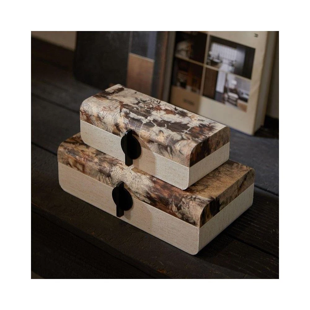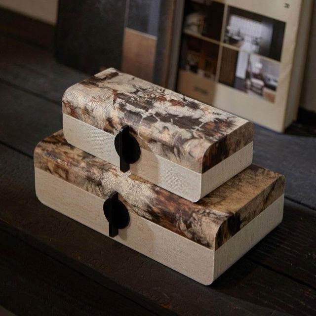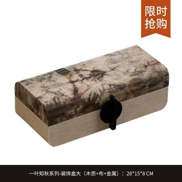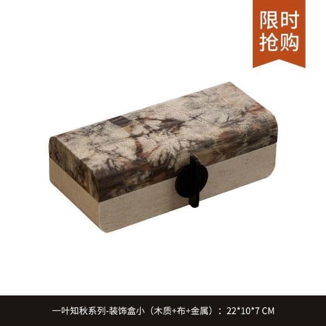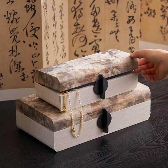 博博精品 軟裝古風木質布藝高檔裝飾盒復古收納盒儲物盒擺件玄關簡約首飾盒