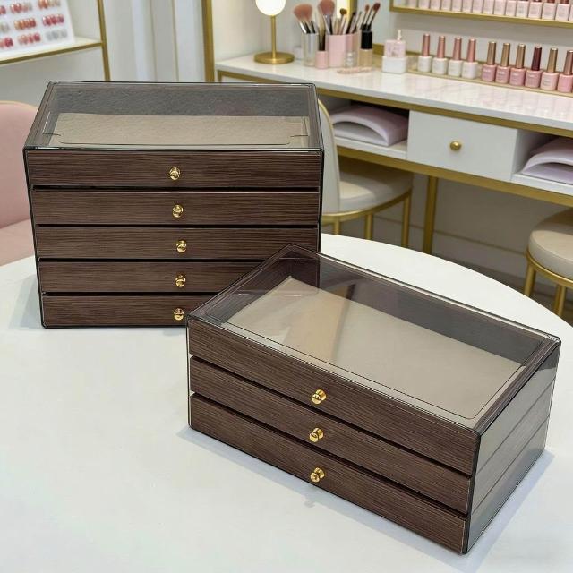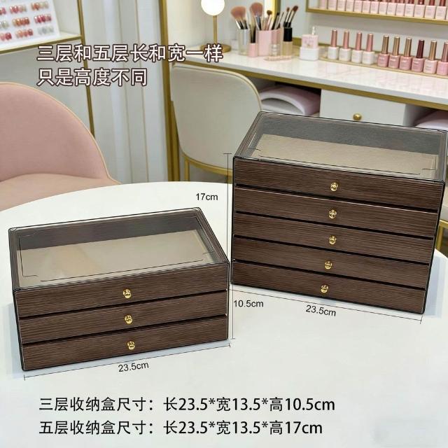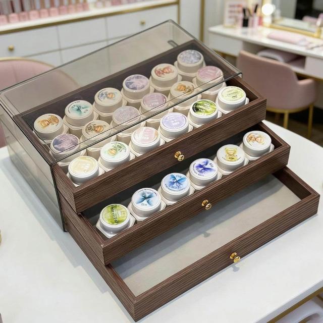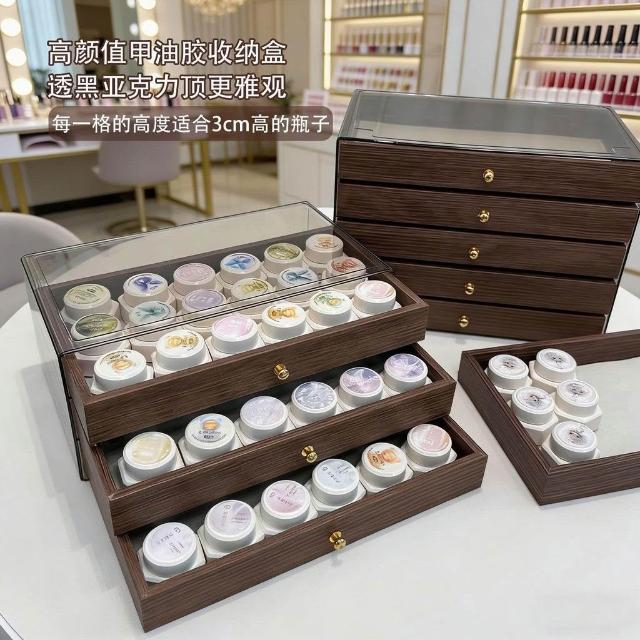 博博精品 美甲罐裝膠收納盒抽屜式2026年新款甲油膠胡桃木 桌面高級工具盒