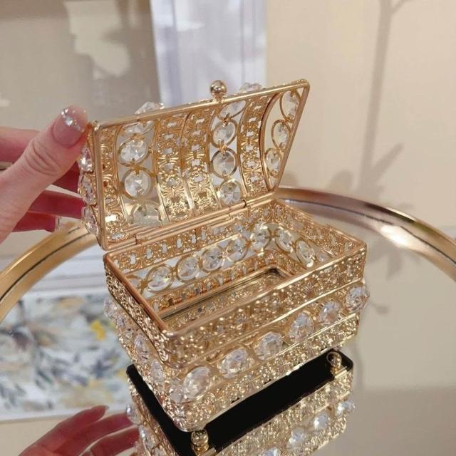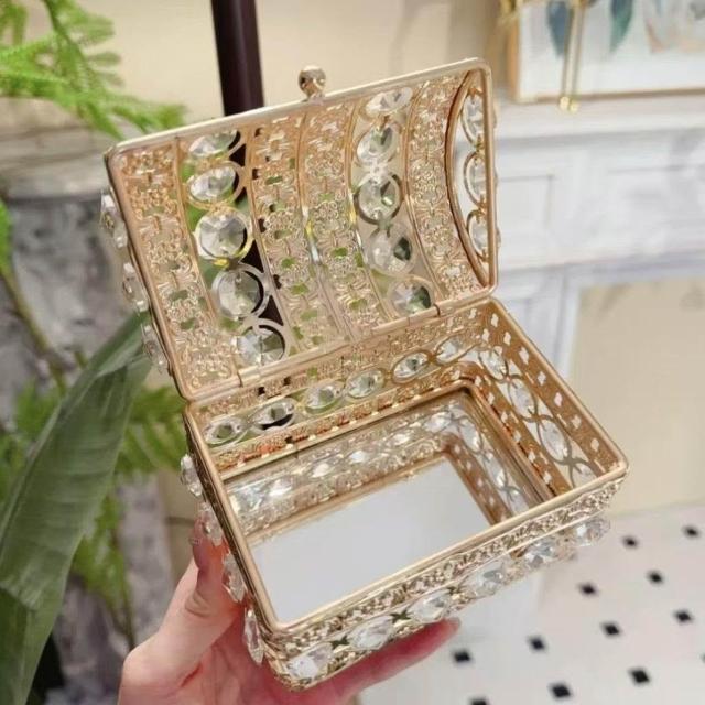 博博精品 專供金項鍊戒指銀耳環收納盒奢華桌面水晶收納首飾盒鏡面盒子