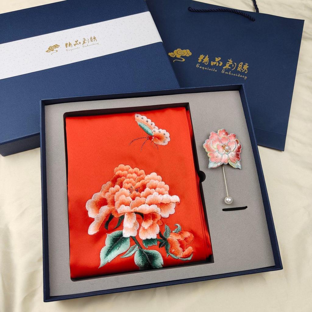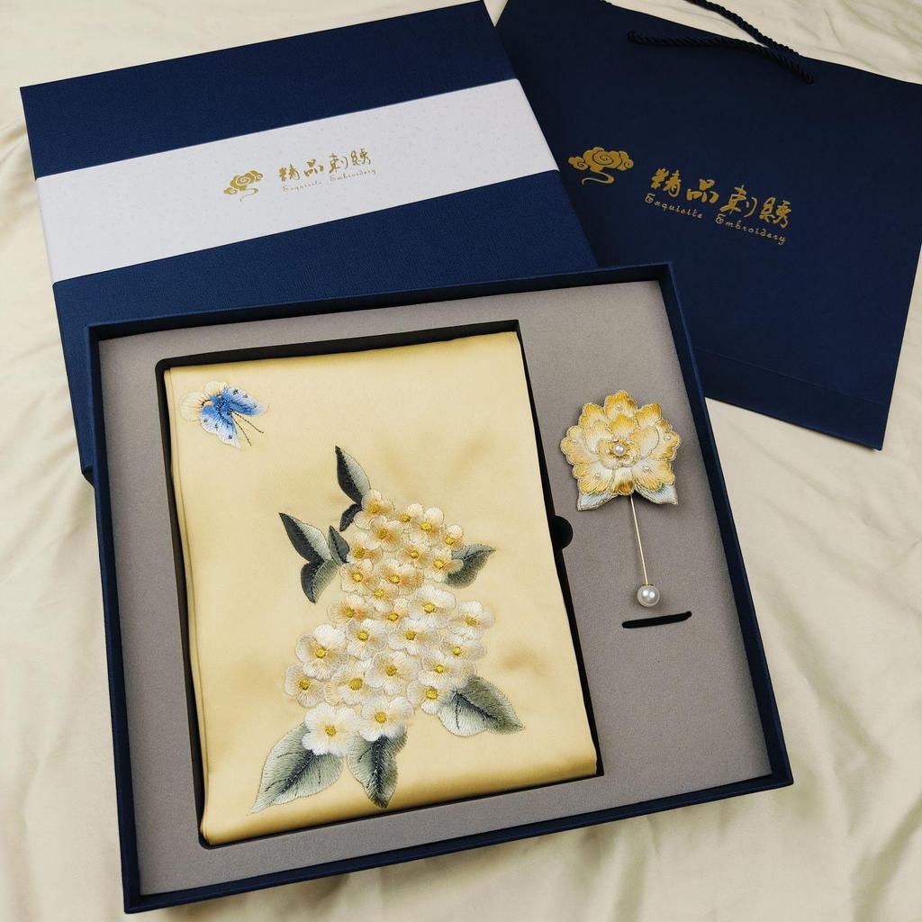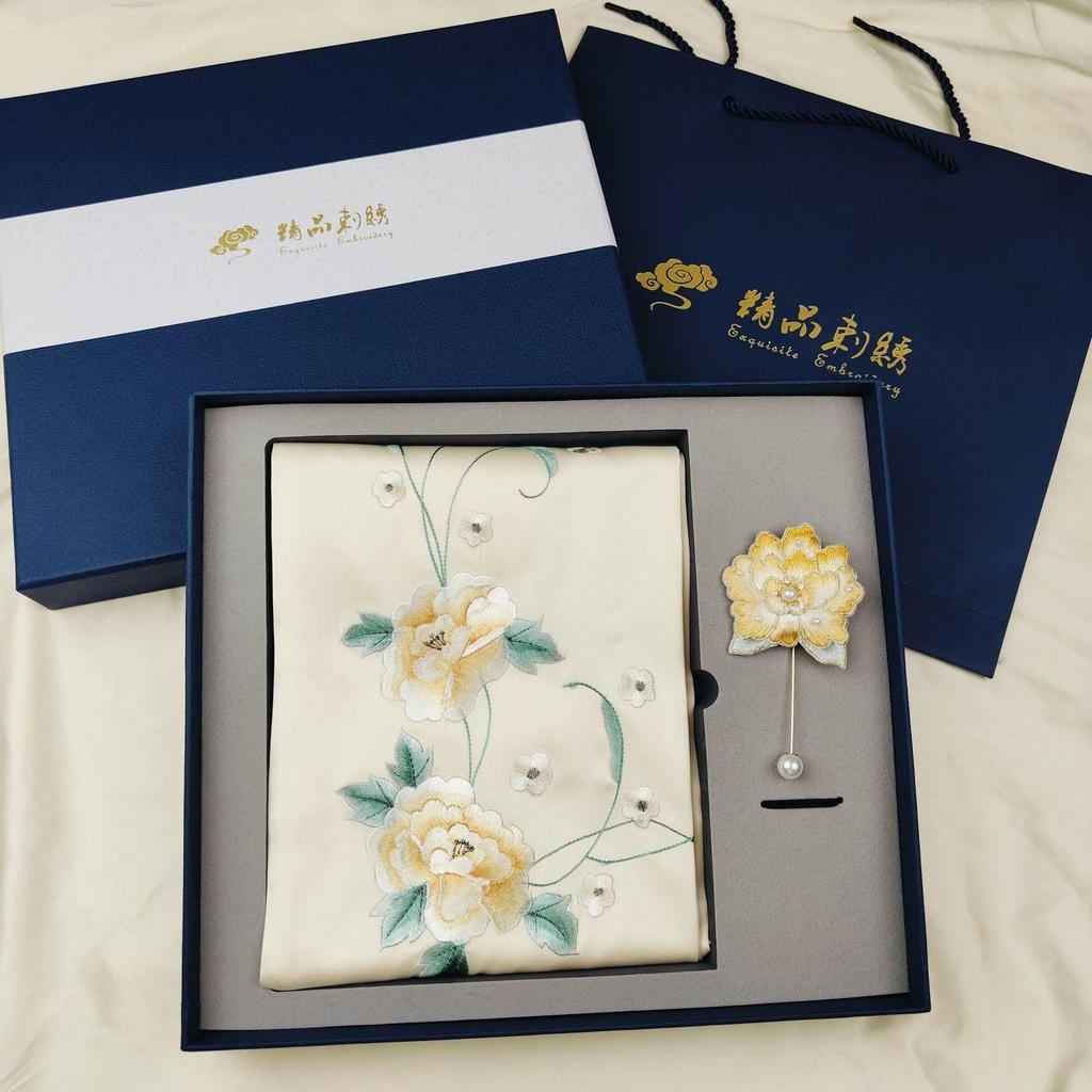 免運+可開發票 蘇州 刺繡絲巾蜀繡絲巾 節日送禮精選 公司團購禮品 支持定製 logo刺繡 高檔精美禮盒裝 送禮體面大方