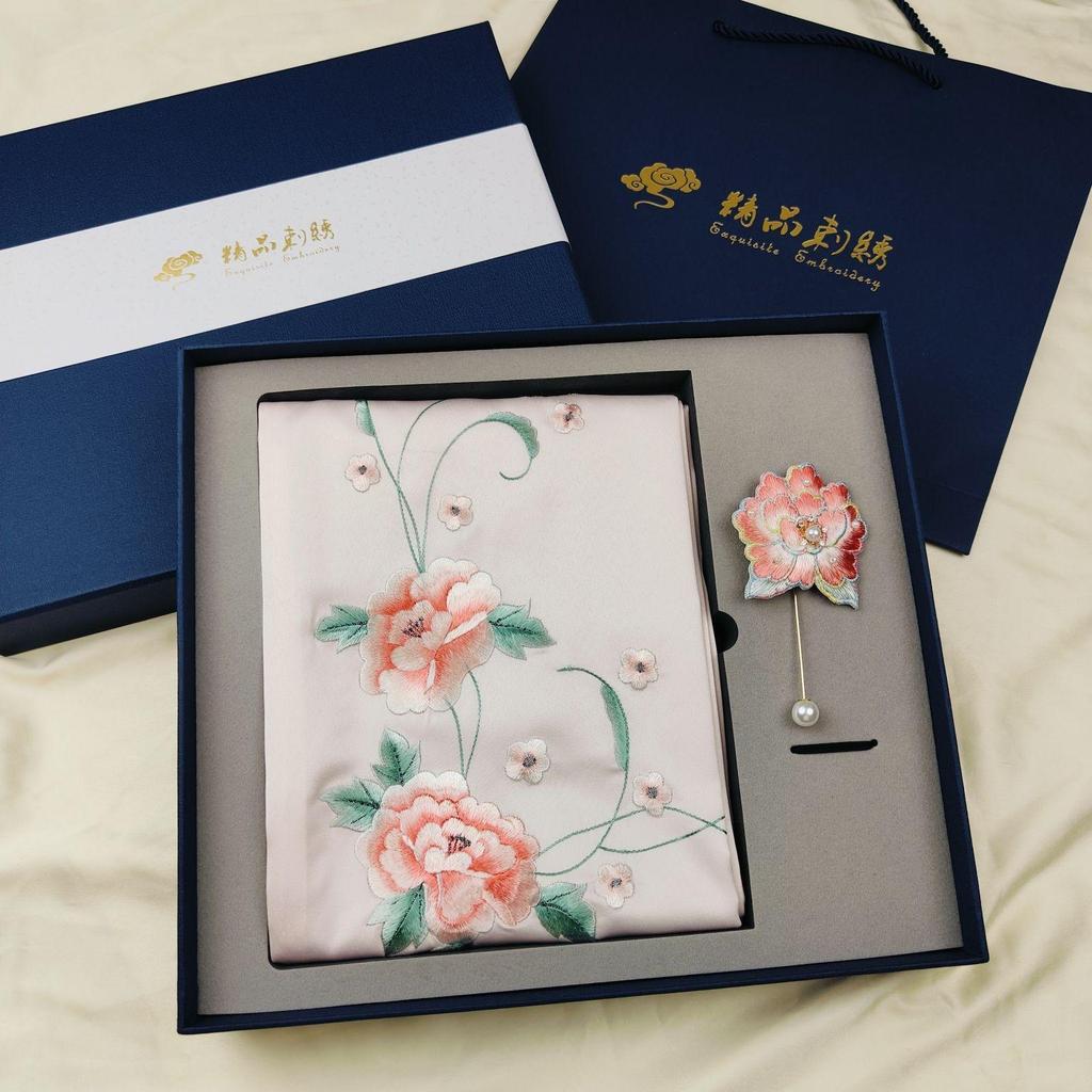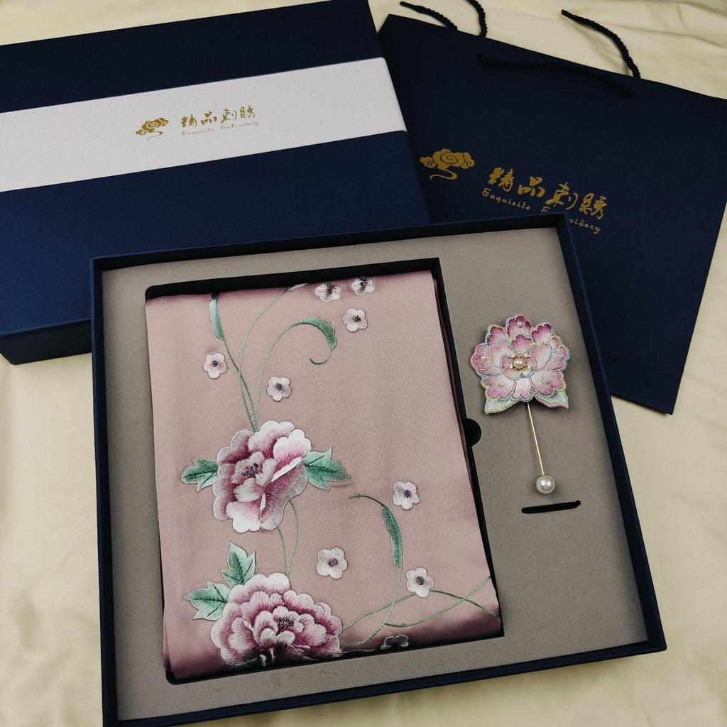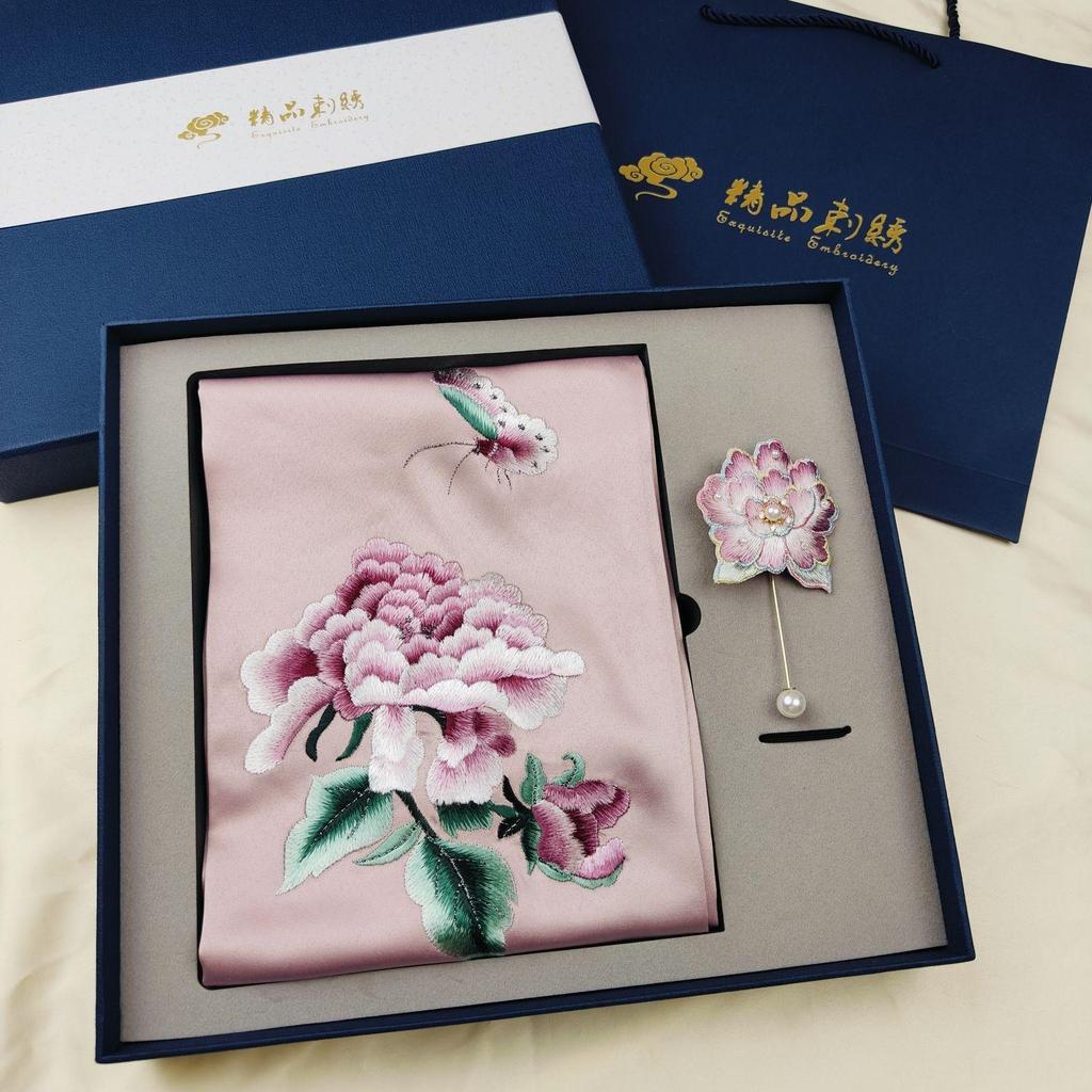 免運+可開發票 蘇州 刺繡絲巾蜀繡絲巾 節日送禮精選 公司團購禮品 支持定製 logo刺繡 高檔精美禮盒裝 送禮體面大方