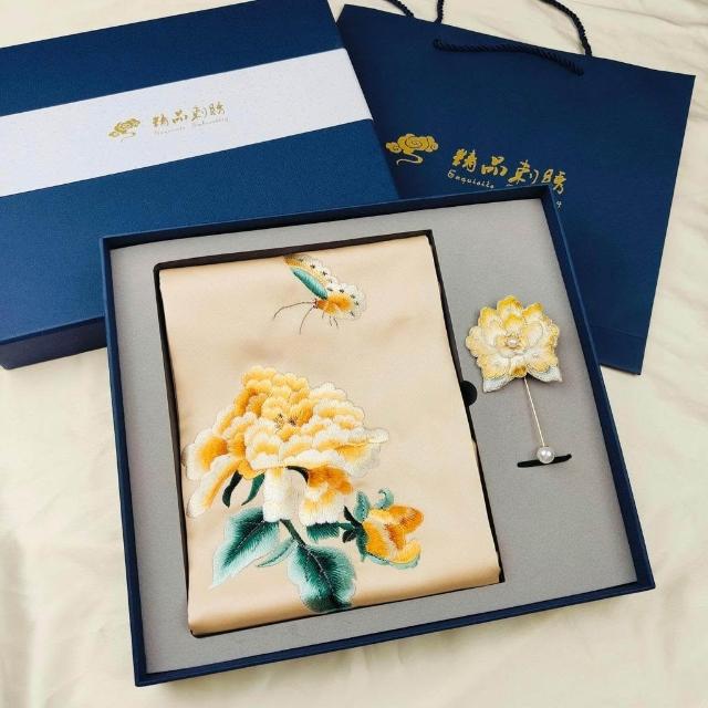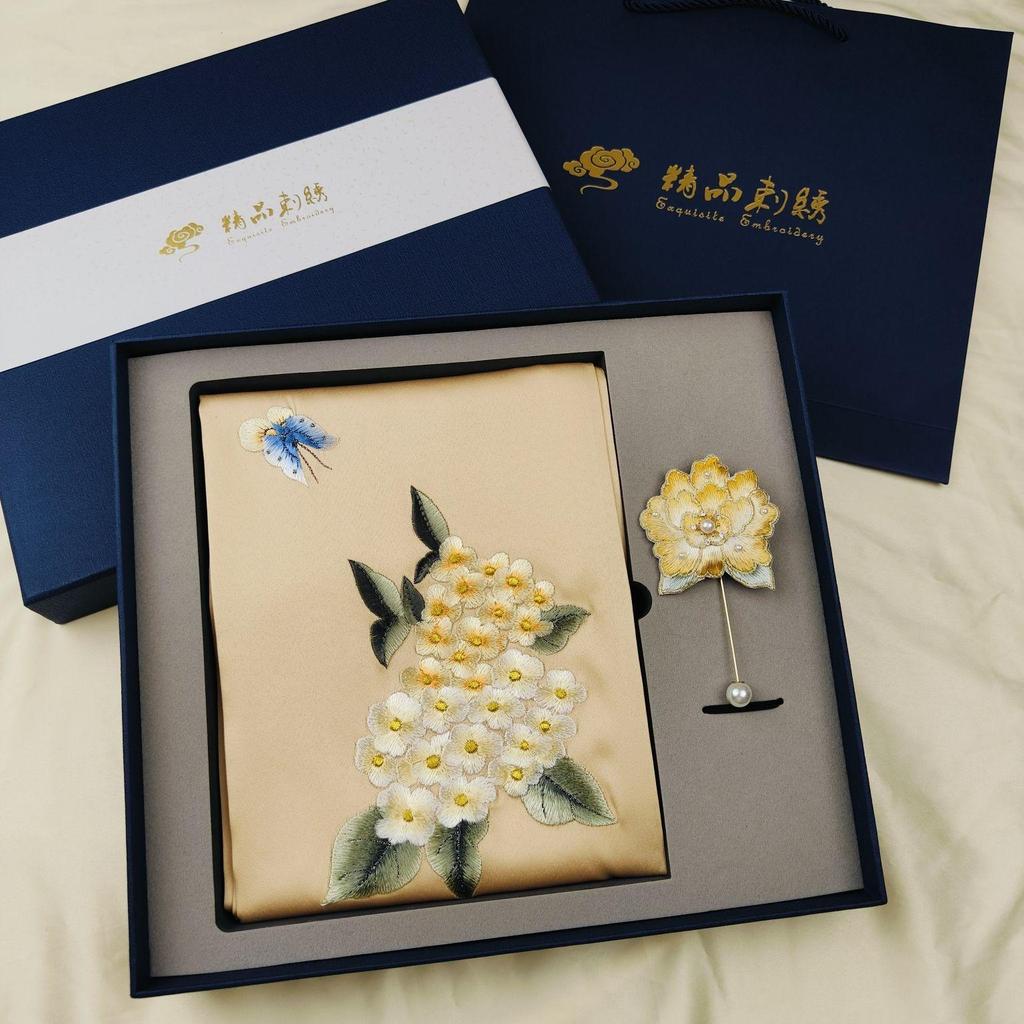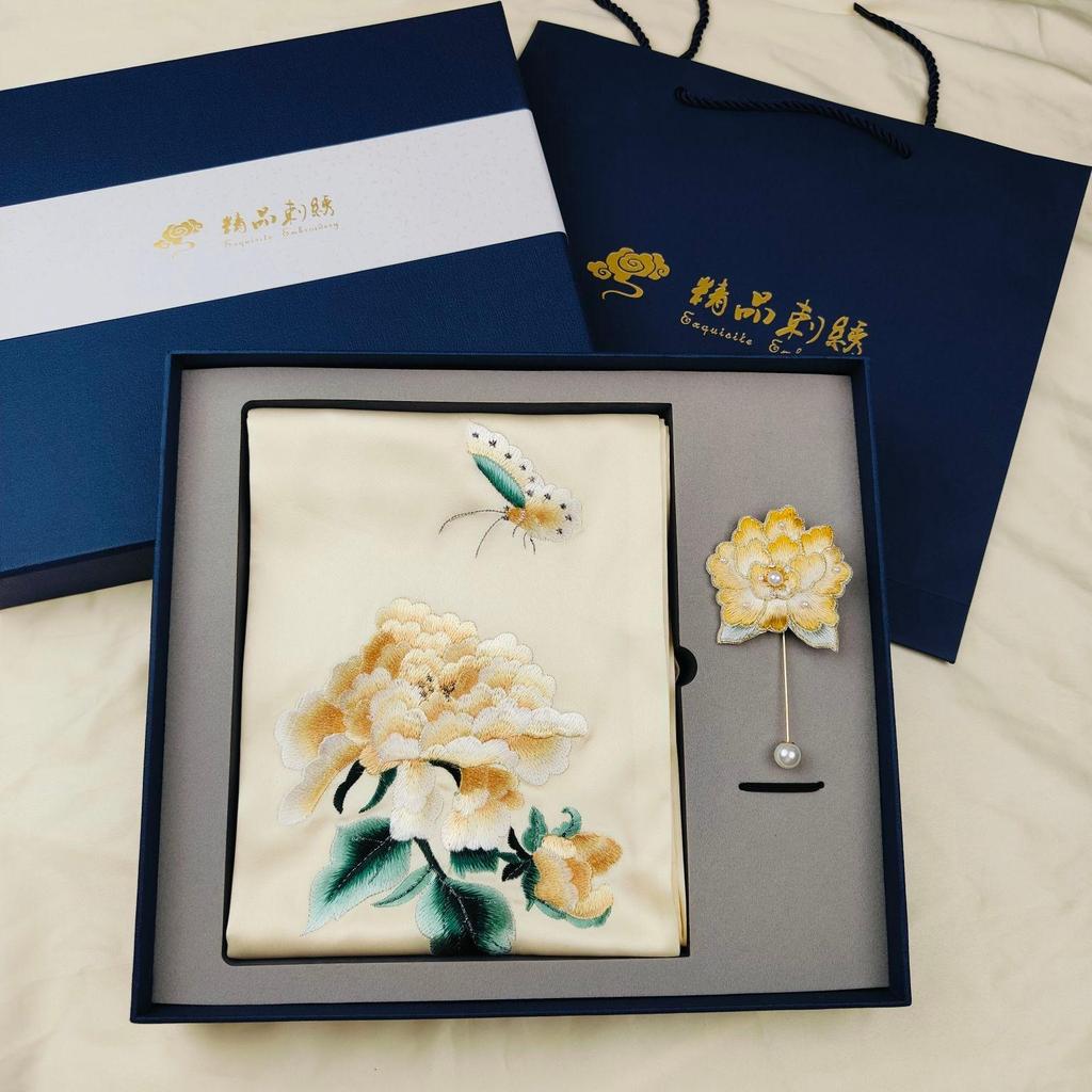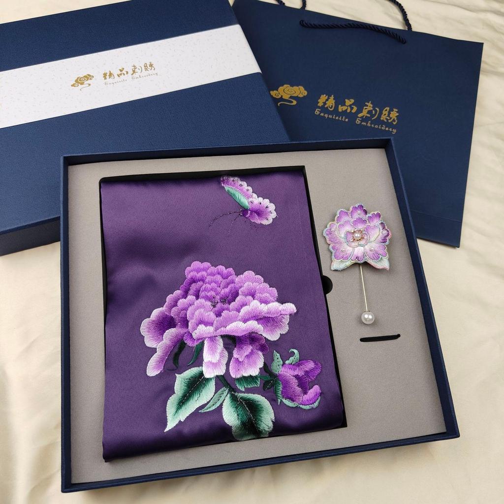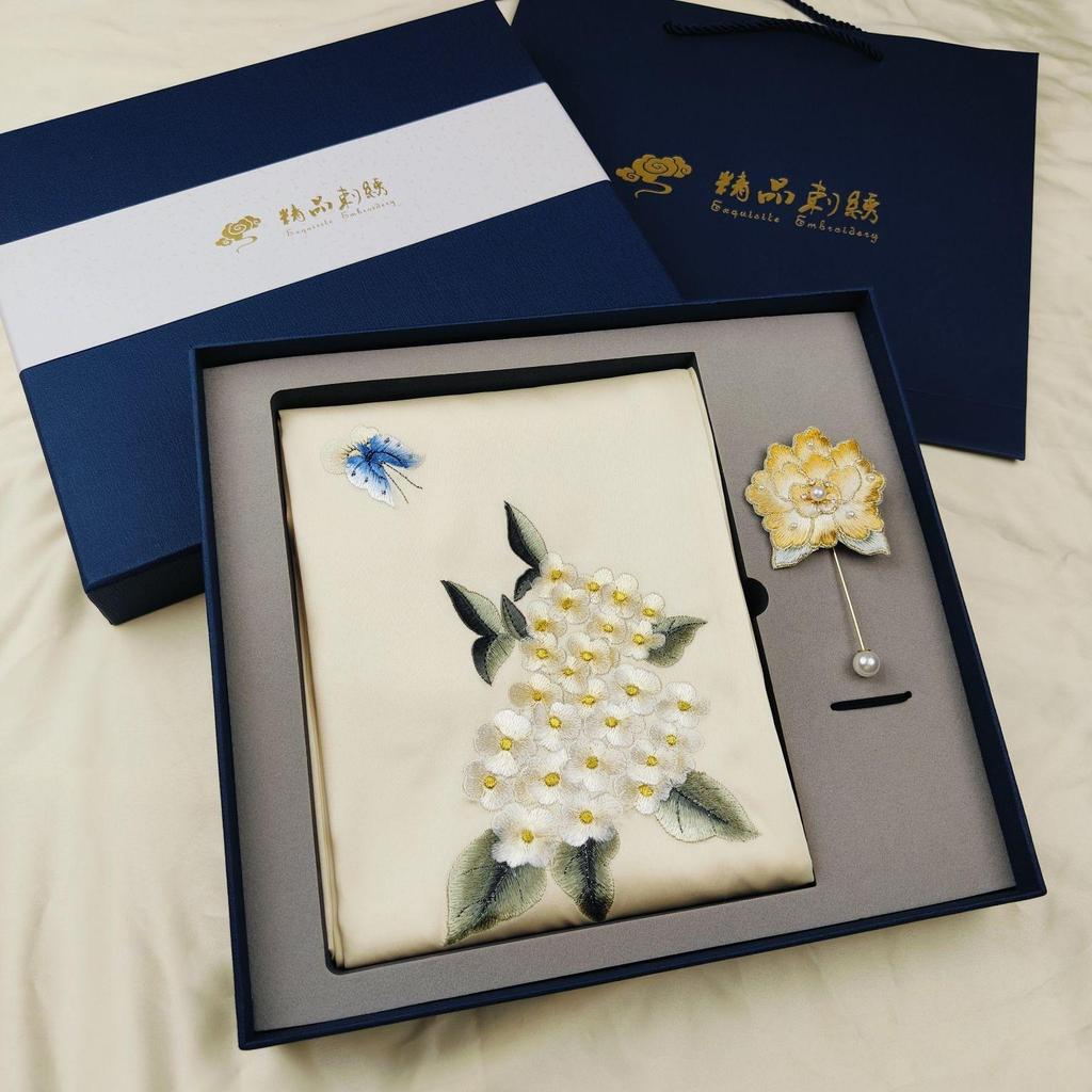 免運+可開發票 蘇州 刺繡絲巾蜀繡絲巾 節日送禮精選 公司團購禮品 支持定製 logo刺繡 高檔精美禮盒裝 送禮體面大方
