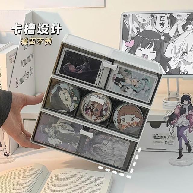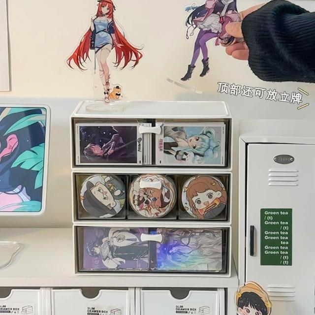 免運+可開發票 桌面抽屜式高透壓克力吧唧收納盒 大容量徽章展示置物架 谷子周邊防刮防塵收納 可疊加多層 動漫周邊收納神器