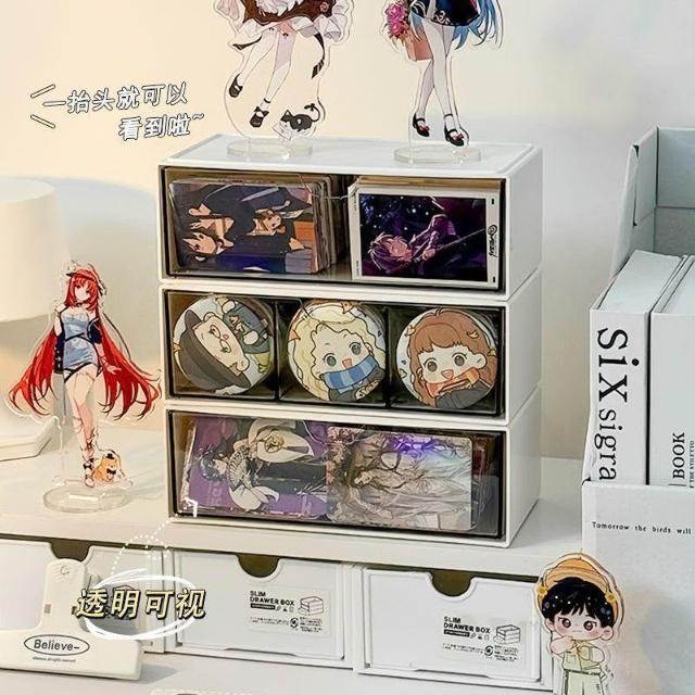 免運+可開發票 桌面抽屜式高透壓克力吧唧收納盒 大容量徽章展示置物架 谷子周邊防刮防塵收納 可疊加多層 動漫周邊收納神器