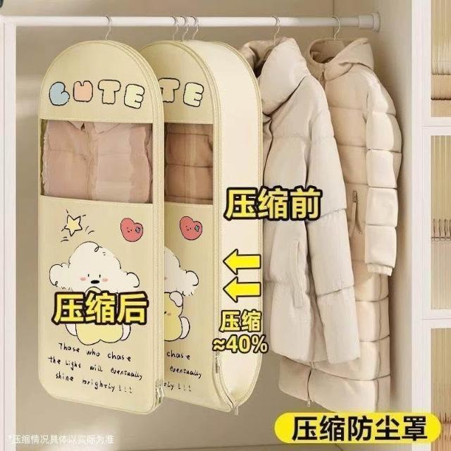 免運+可開發票 羽絨服壓縮 防塵罩掛式 家用衣櫃衣物防塵袋 大衣西裝收納袋 抽氣真空壓縮袋 防塵防潮衣櫥整理收納神器