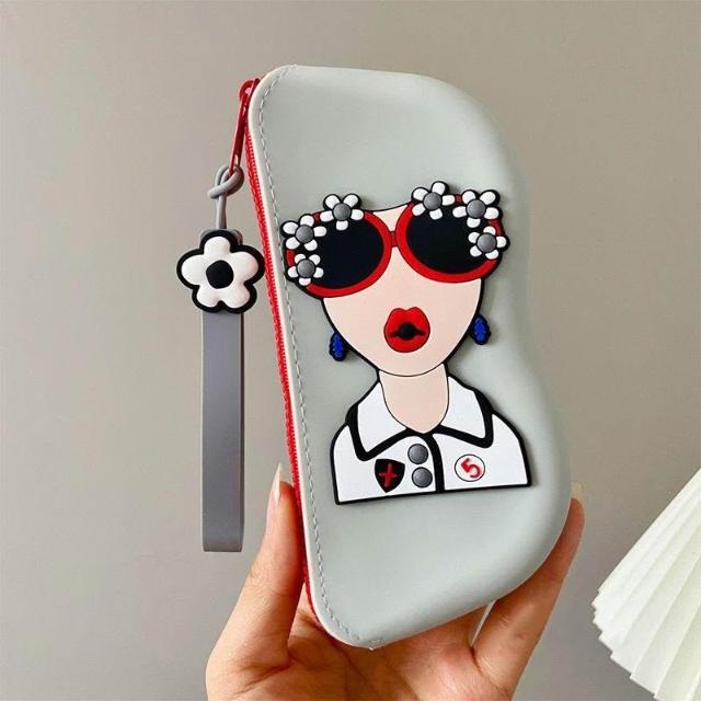 免運+可開發票 卡通可愛 硅膠眼鏡袋 撞色便攜式 墨鏡太陽鏡保護套 可掛包輕薄 眼鏡盒收納包 防壓防刮 柔軟耐用 易攜帶