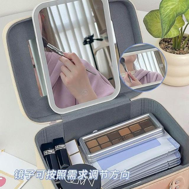 免運+可開發票 LED鏡子化妝包 可愛化妝箱便攜式 防水大容量化妝品 手提小型旅行箱 帶燈補光超實用 外出旅行必備收納包