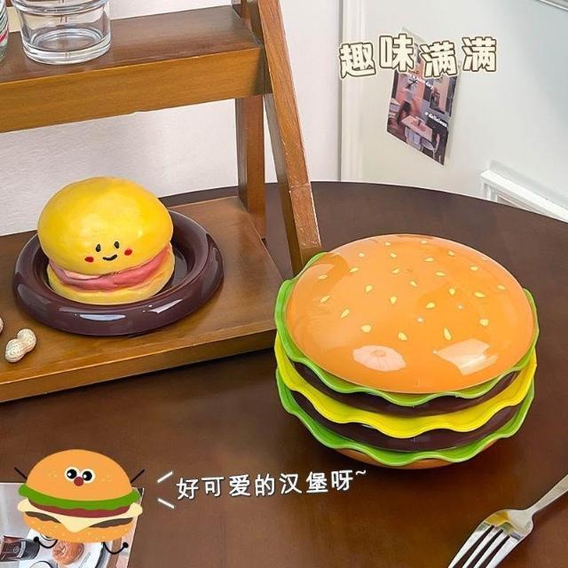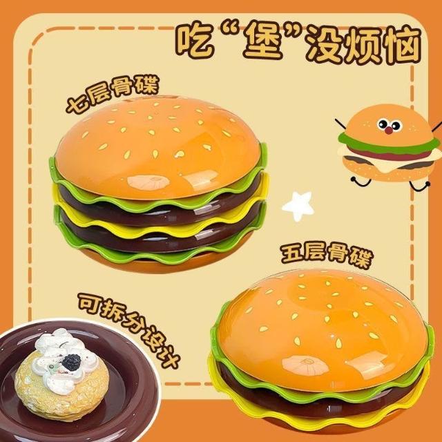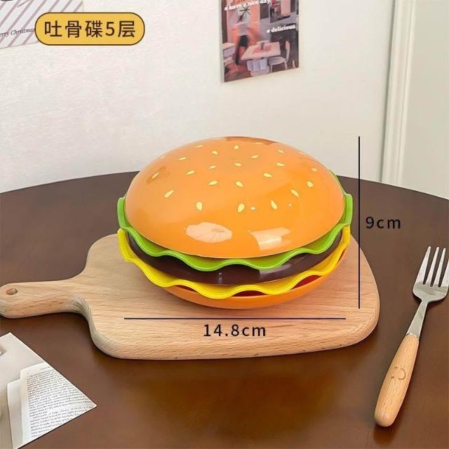 免運+可開發票 漢堡包造型吐骨碟餐具造型可愛盤子沙拉碗甜品盤卡通調料碟子套裝 萌趣造型實用百搭 餐桌點綴超吸睛 家用聚餐