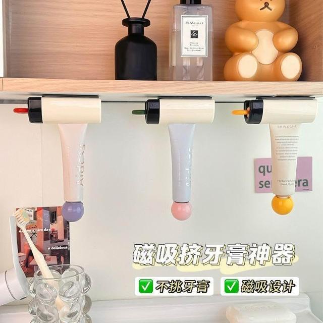 免運+可開發票 鏡櫃底磁吸擠牙膏神器 小樣洗面奶也適用 兒童專用輕鬆擠壓 衛生間壁掛式免打孔 懶人必備節省用量 收納小物