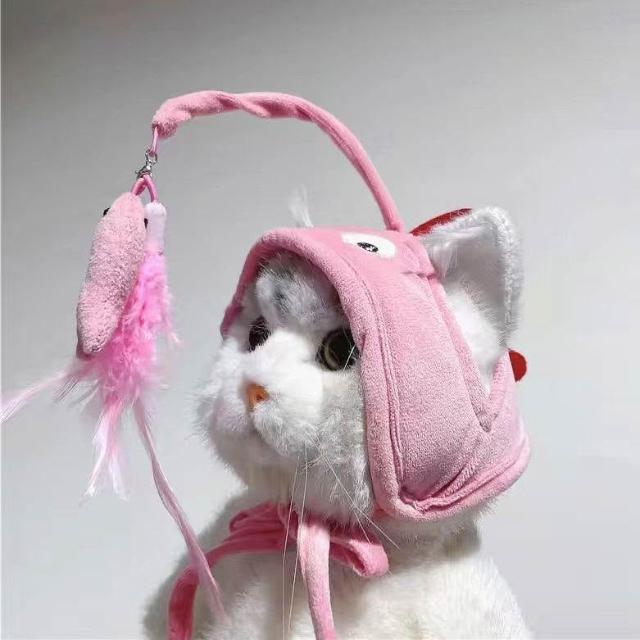 博博精品 寵物貓咪狗狗網紅兔耳朵獅子頭套 兔子造型貓貓帽子 可愛漢堡頭飾 趣味裝扮 柔軟舒適透氣 中小型犬貓適用