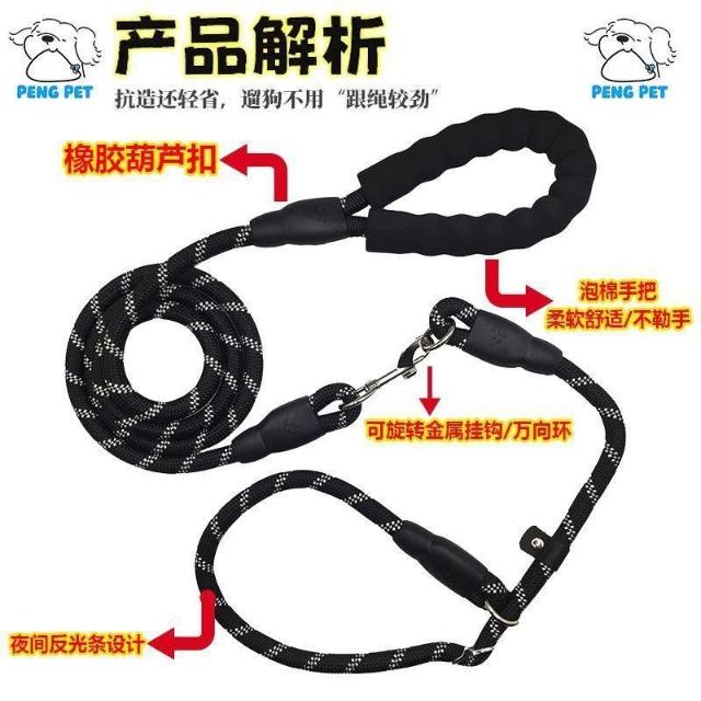 博博精品 狗狗寵物牽引繩 小中大型犬 遛狗繩 防爆衝 專業訓犬 金毛適用 加長加粗 P繩耐磨抗拉 舒適好握外出安全