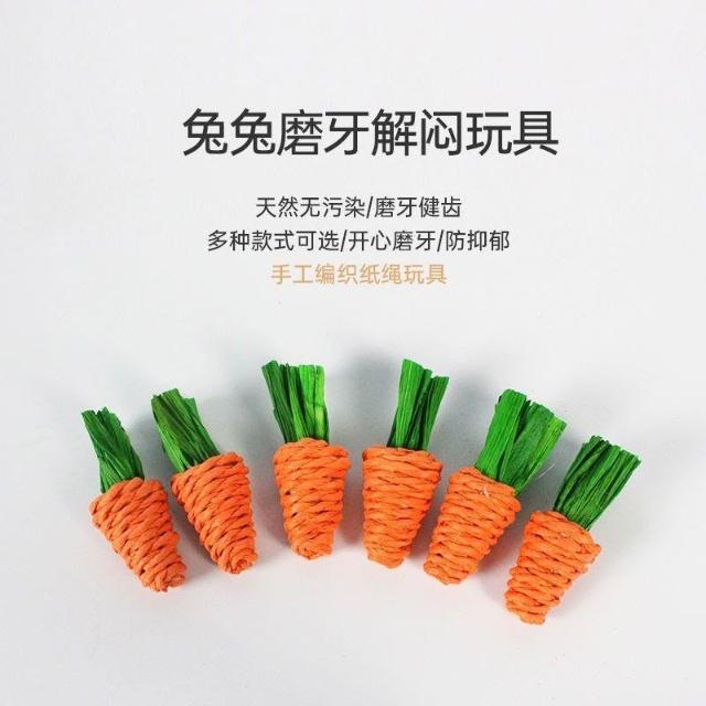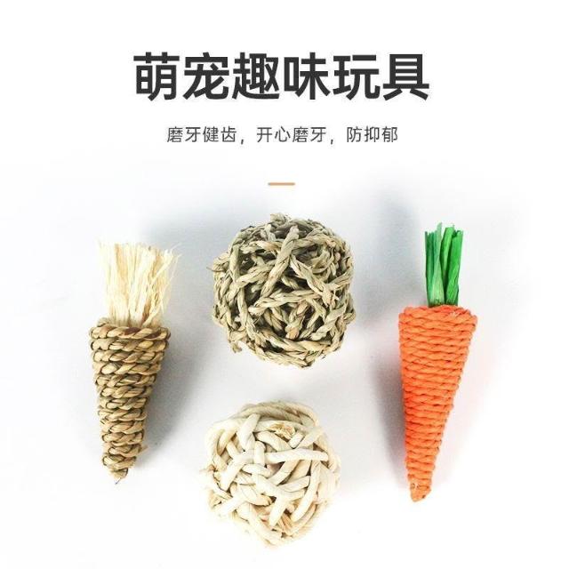 博博精品 兔子啃咬磨牙 水草草編玩具 手工編制 解悶玩耍 豚鼠龍貓兔兔垂耳兔專用 胡蘿蔔造型 天然安全 耐磨耐咬