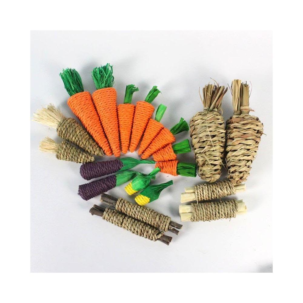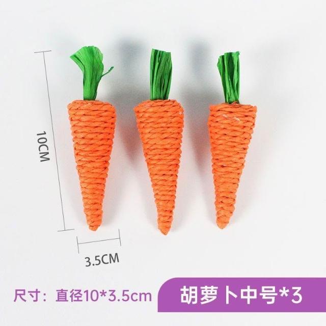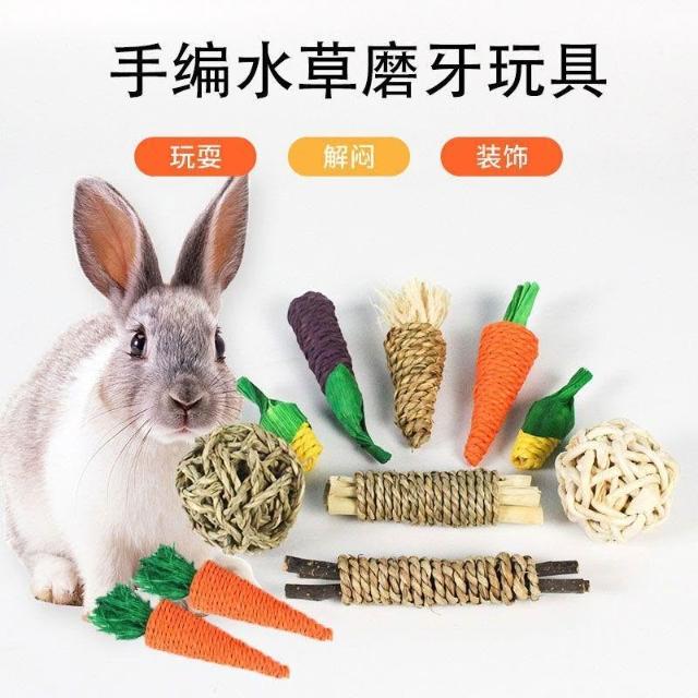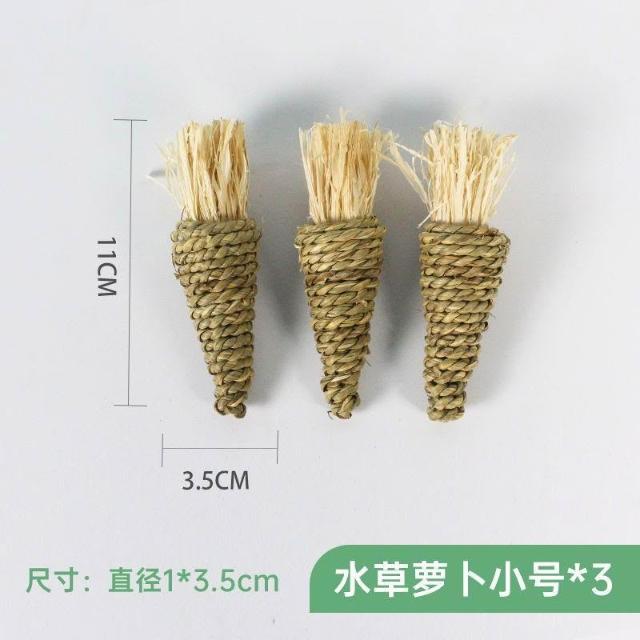 博博精品 兔子啃咬磨牙 水草草編玩具 手工編制 解悶玩耍 豚鼠龍貓兔兔垂耳兔專用 胡蘿蔔造型 天然安全 耐磨耐咬