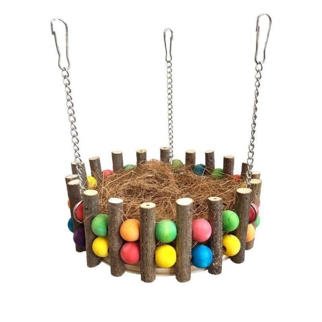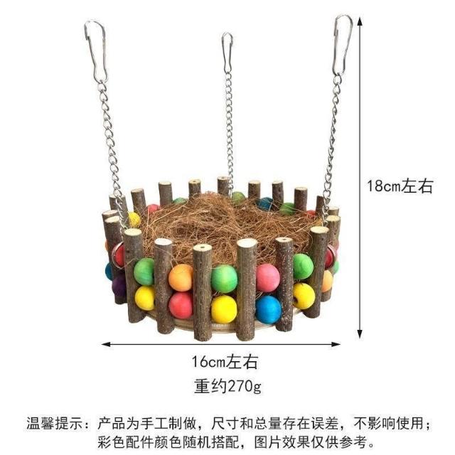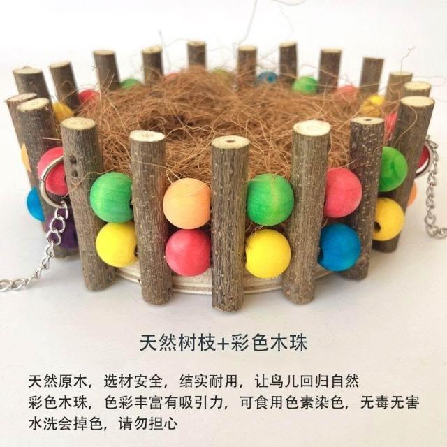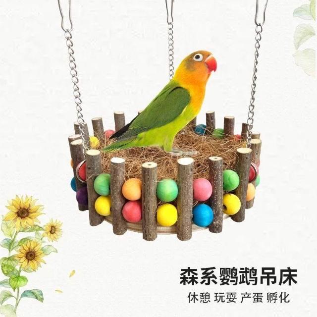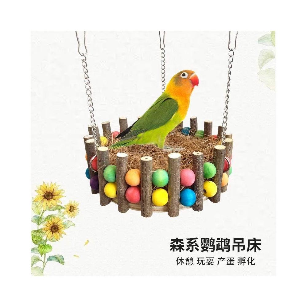 博博精品 倉鼠鸚鵡玩具 樹枝彩珠 攀爬鞦韆 鳥啃咬玩具 休憩產蛋 吊牀 椰絲墊 懸掛鳥窩 安全耐咬 舒適透氣