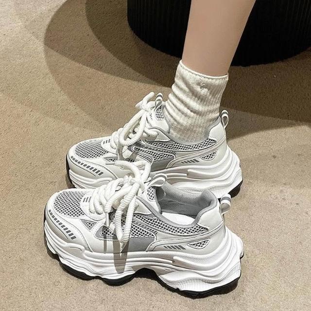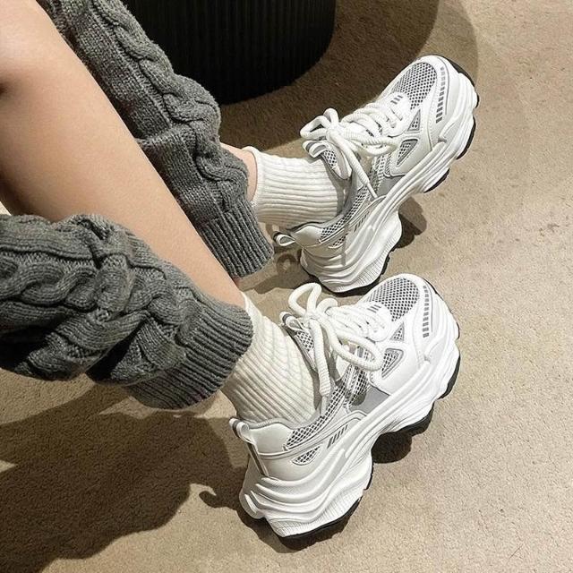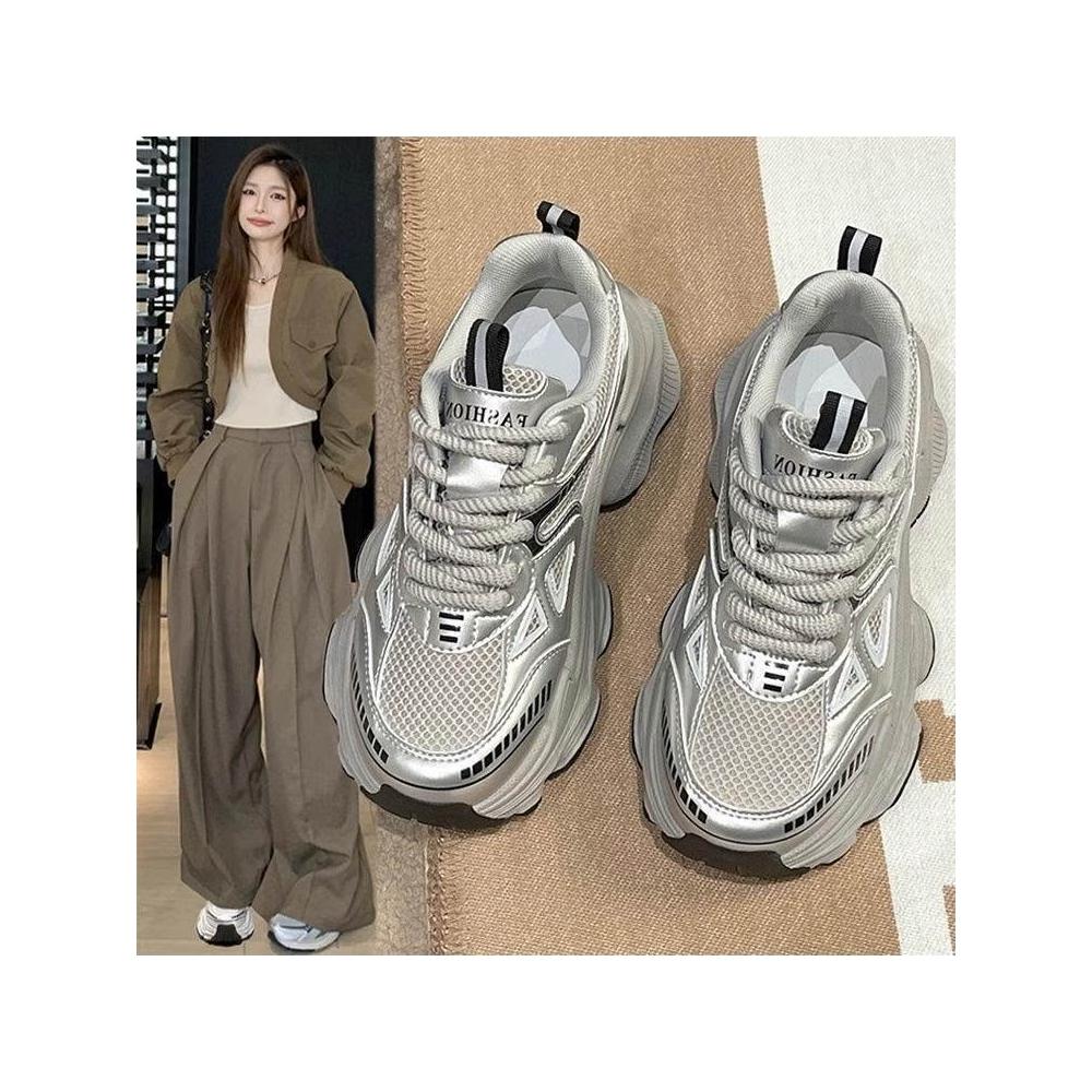 博博精品 老爹鞋女 2026 新款爆款夏秋季 銀色鞋子 百搭鬆糕厚底 增高 休閒運動鞋 輕盈舒適透氣耐磨 顯高顯腿