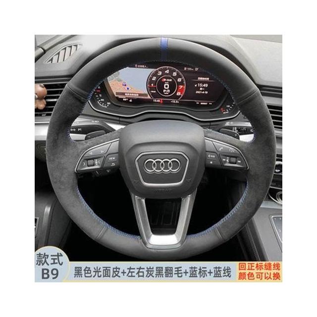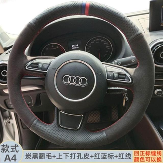 博博精品 翻毛皮手縫方向盤套 防滑吸汗耐磨 車把套 真皮汽車專用把套 四季通用 舒適貼手 運動質感 車內必備