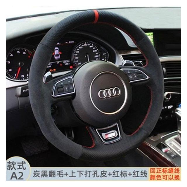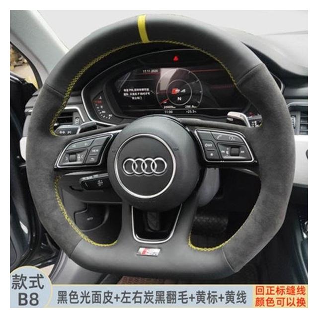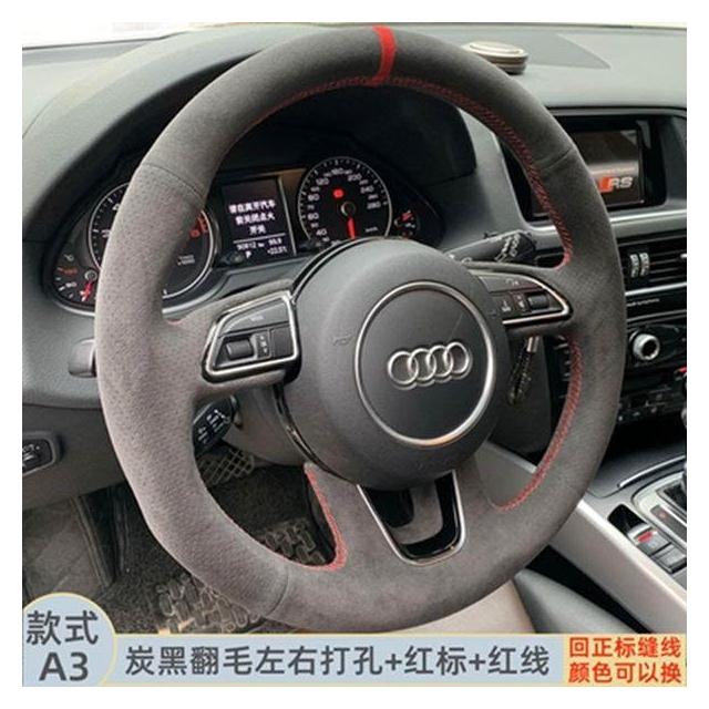 博博精品 翻毛皮手縫方向盤套 防滑吸汗耐磨 車把套 真皮汽車專用把套 四季通用 舒適貼手 運動質感 車內必備