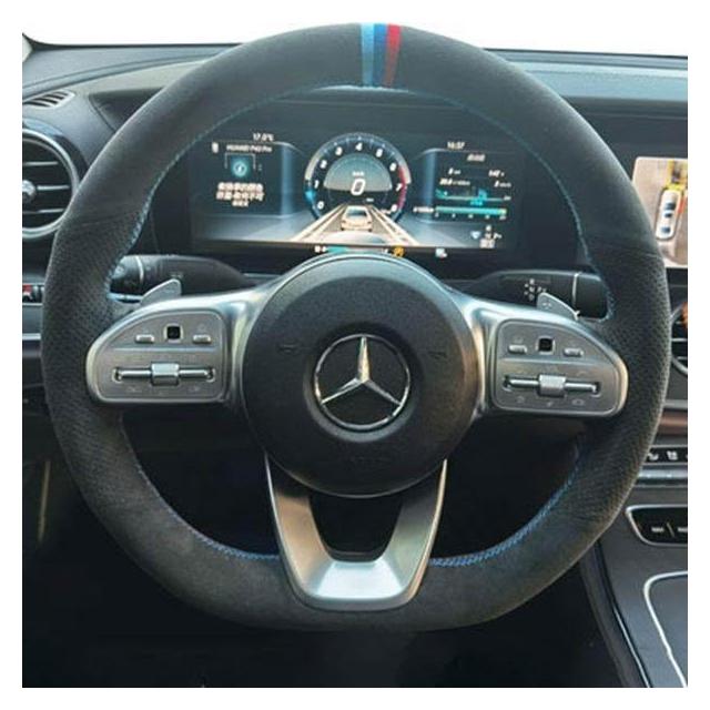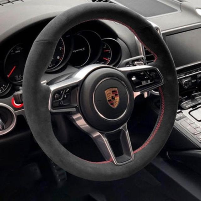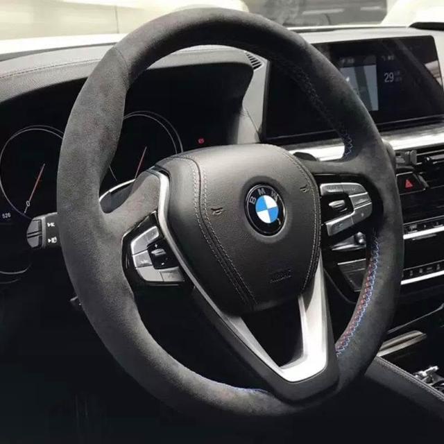 博博精品 翻毛皮手縫方向盤套 防滑吸汗耐磨 車把套 真皮汽車專用把套 四季通用 舒適貼手 運動質感 車內必備