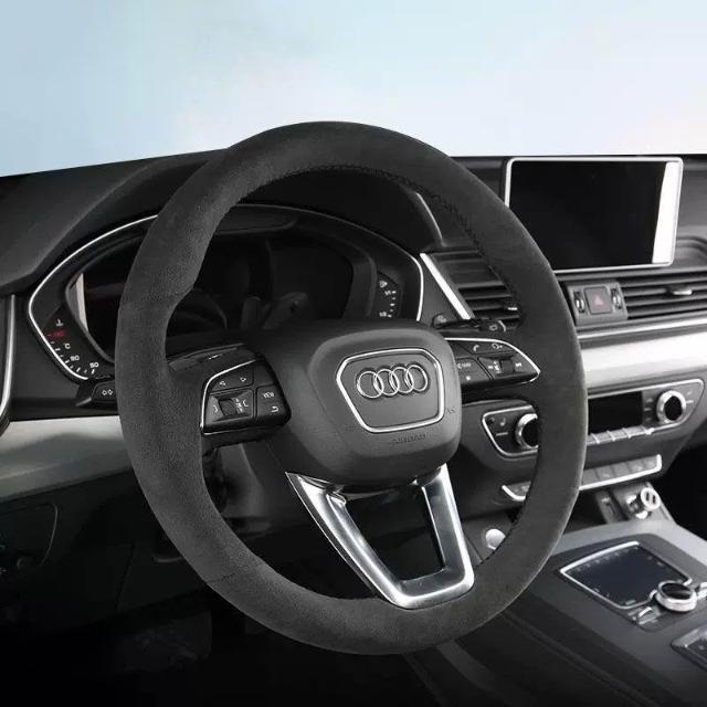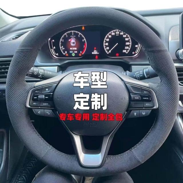 博博精品 翻毛皮手縫方向盤套 防滑吸汗耐磨 車把套 真皮汽車專用把套 四季通用 舒適貼手 運動質感 車內必備