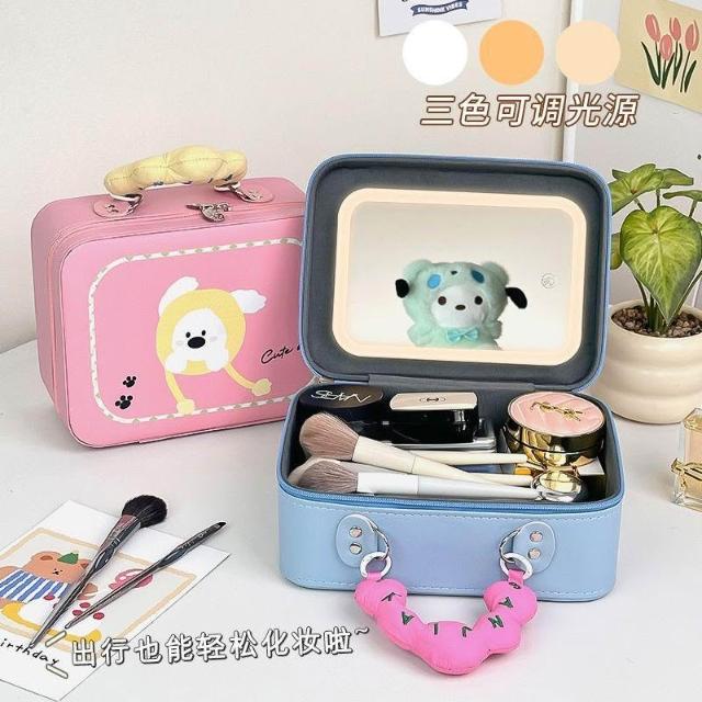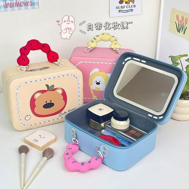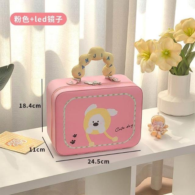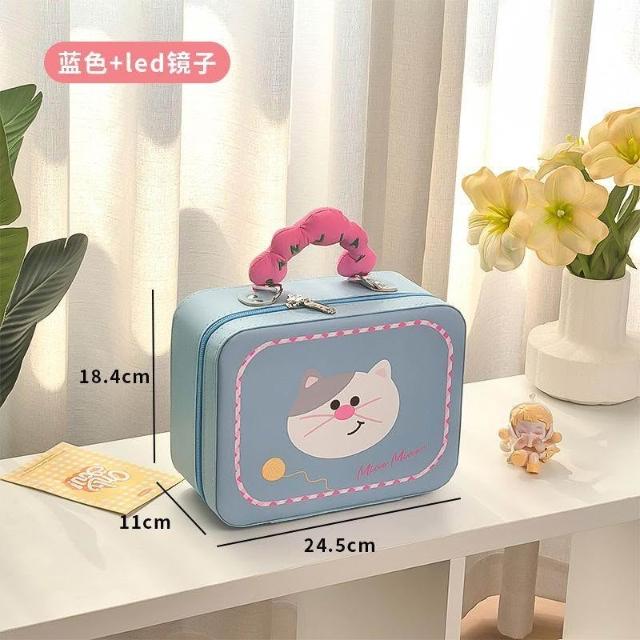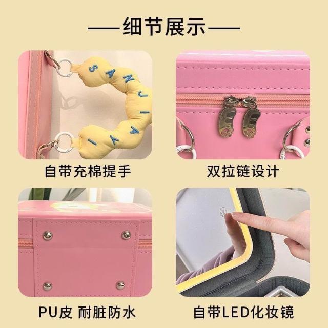 博博精品 LED鏡子化妝包 可愛化妝箱便攜式 防水大容量化妝品 手提小型旅行箱 帶燈補光超實用 外出旅行必備收納包
