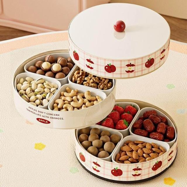 博博精品 2026新年乾果盤 客廳茶几家用圓形水果盤 堅果糖果盒 過年零食擺放盤 喜慶應景 新春待客必備 實用好物