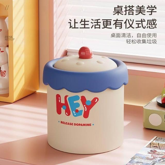 博博精品 桌面垃圾桶 美拉德高顏值帶蓋設計 家用臥室客廳兩用 可愛迷你造型不佔空間 新款紙簍輕鬆收納雜物 桌面整潔