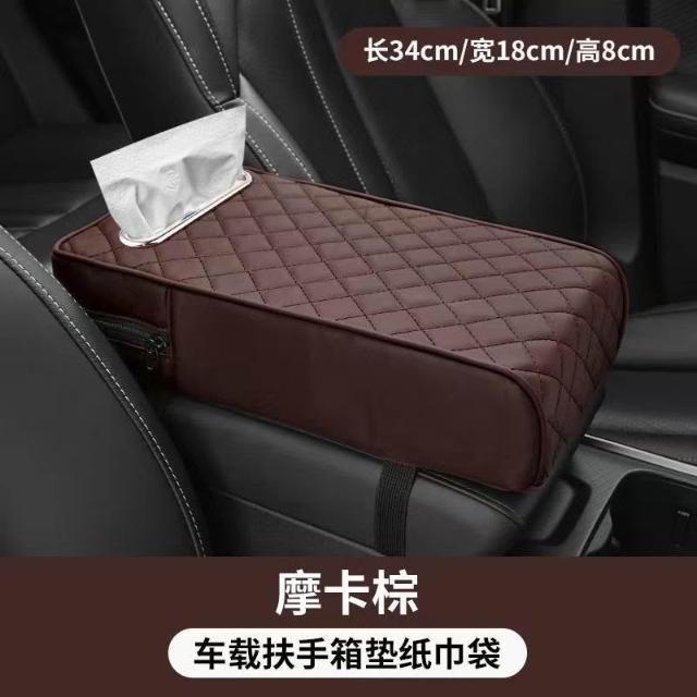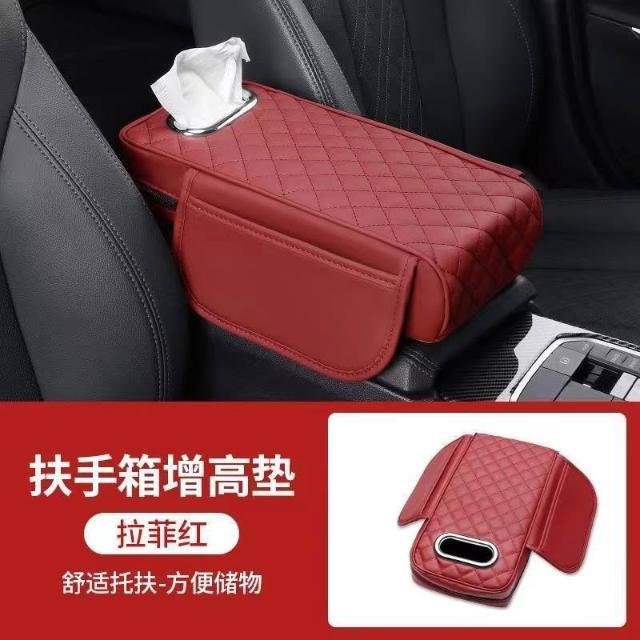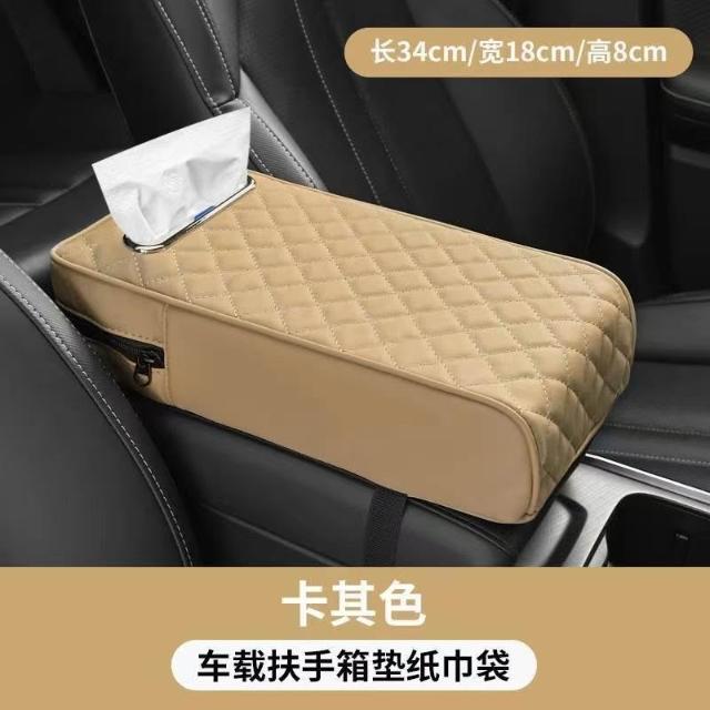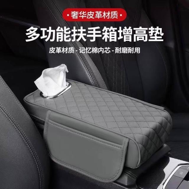 博博精品 汽車扶手箱增高墊 車載收納袋二合一 中央手肘墊舒適減壓 帶紙巾盒+儲物袋 實用多功能 車內整潔必備好物