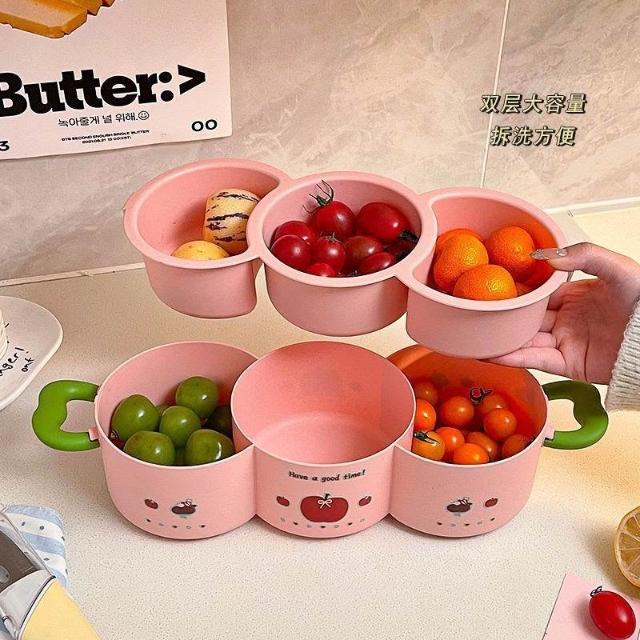 免運+可開發票 大容量 雙層旋轉水果盤 客廳茶几 家用高顏值新款 多功能果籃 可放乾果零食 分類擺放整潔 美觀實用擺放盤
