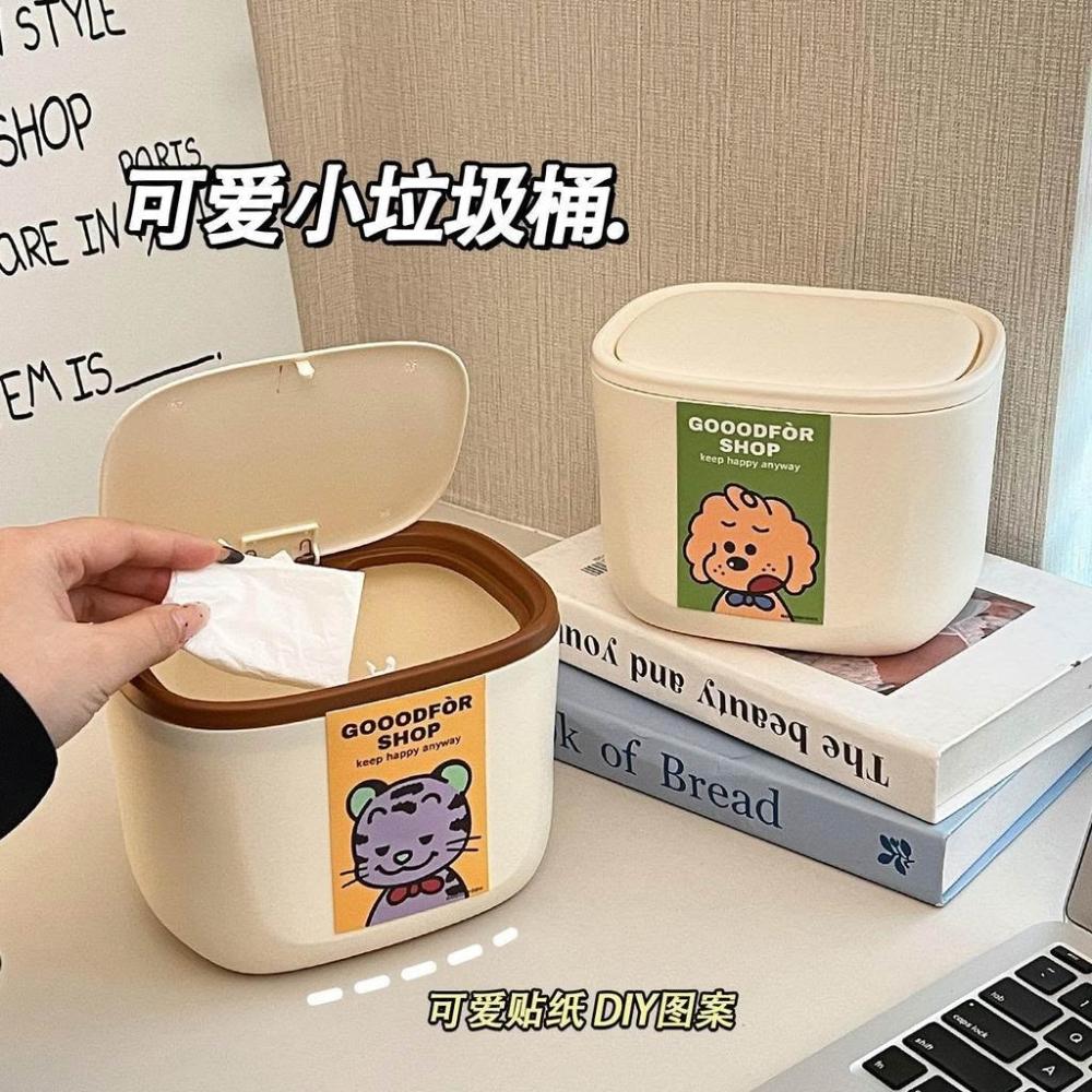 免運+可開發票 桌面垃圾桶 卡通可愛造型 大容量收納桶 學生宿舍辦公室兩用 按壓式防塵設計 迷你小巧不占空間 實用垃圾簍