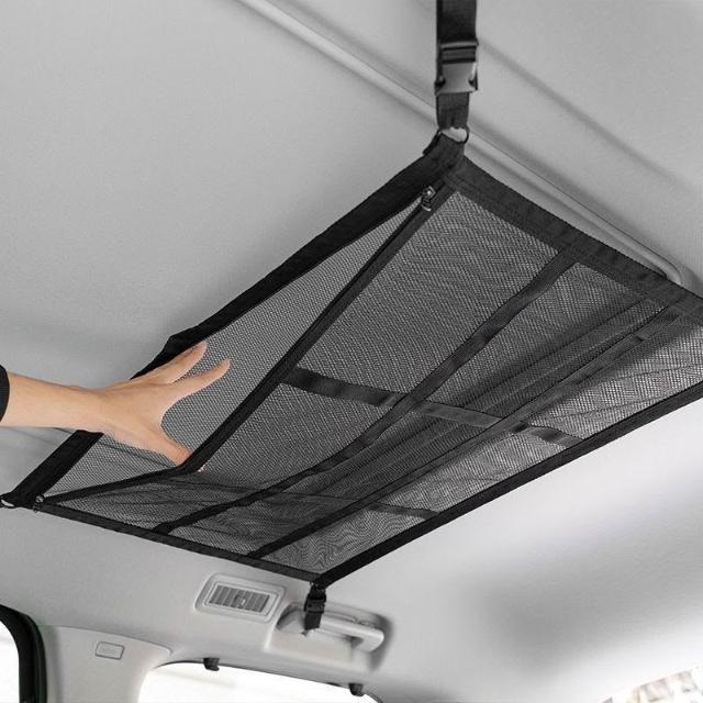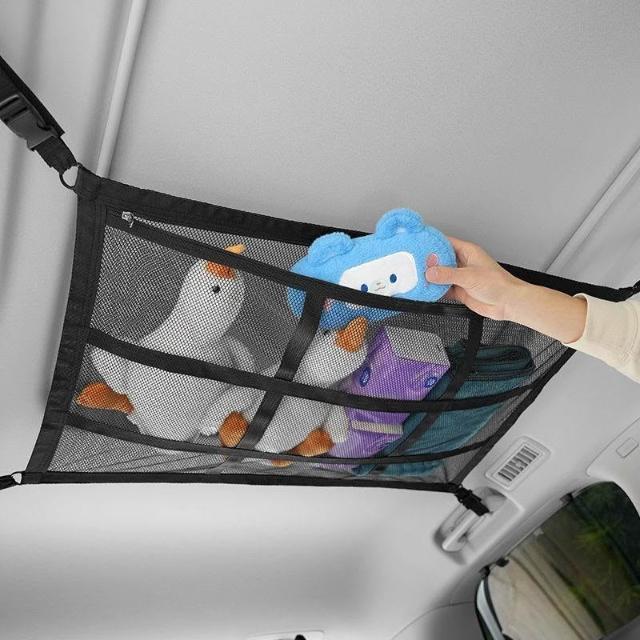 博博精品 汽車頂棚網兜 車載自駕遊 行李雙層收納網 車內懸掛式 儲物固定置物袋 大容量 節省空間 安裝簡易車用必備