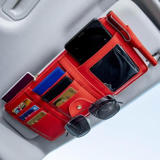 博博精品 汽車遮陽板套收納 多功能車載眼鏡夾 卡片夾 皮革收納袋 卡包 車用內飾 分類收納 安裝簡易 車內實用必備
